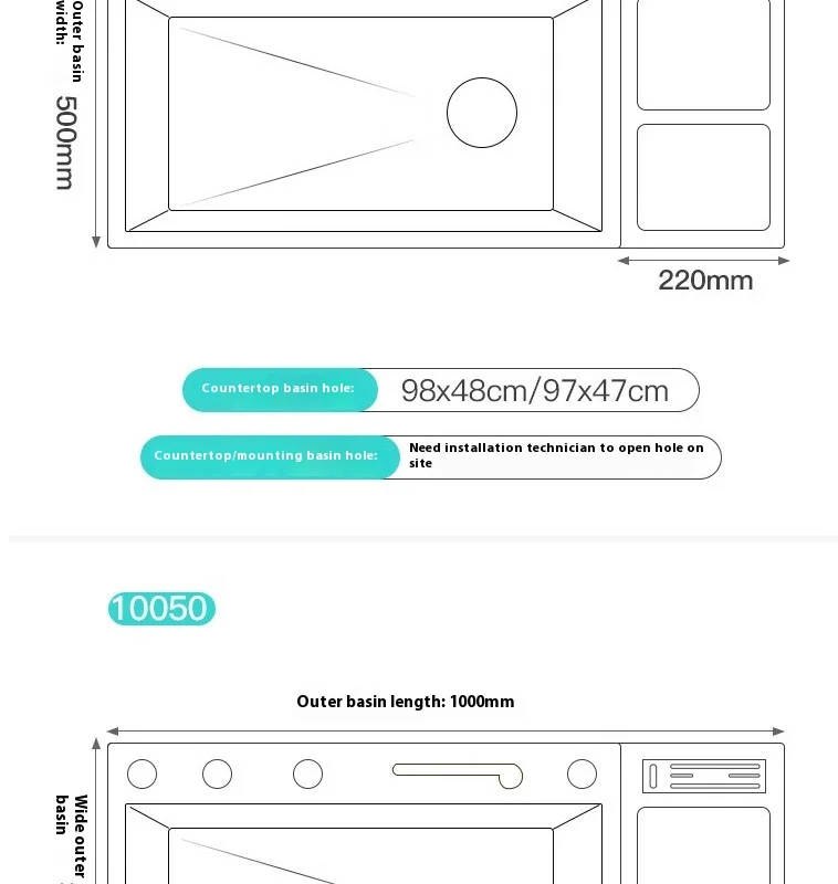 100 CM Large Size Single Slot Stainless Steel Kitchen Sink