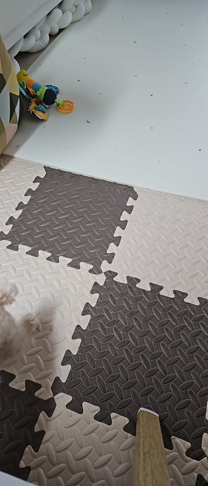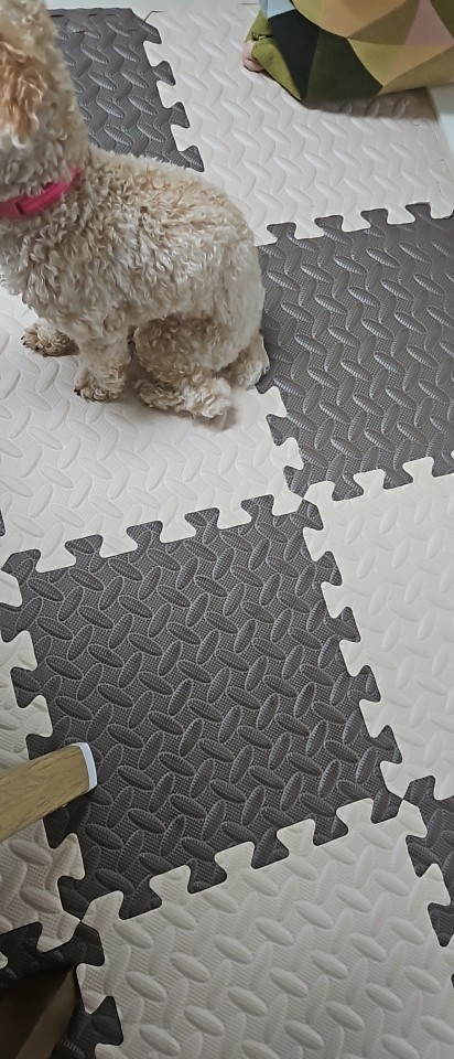 The size is quite small. 😢 I'm still unable to change the flooring. Piled up~ I will update the photo used in the additional review~~* I ordered it to be placed in a 45 square meter living room because of the noise from the floorboards. If it's stuck on, it can even maintain warmth in winter, so I prefer it~* Recommended~*