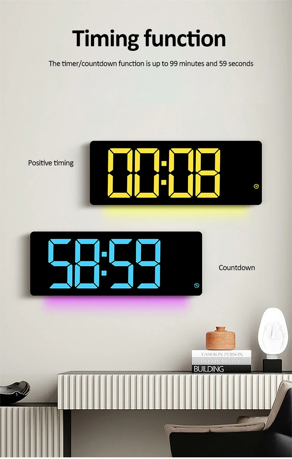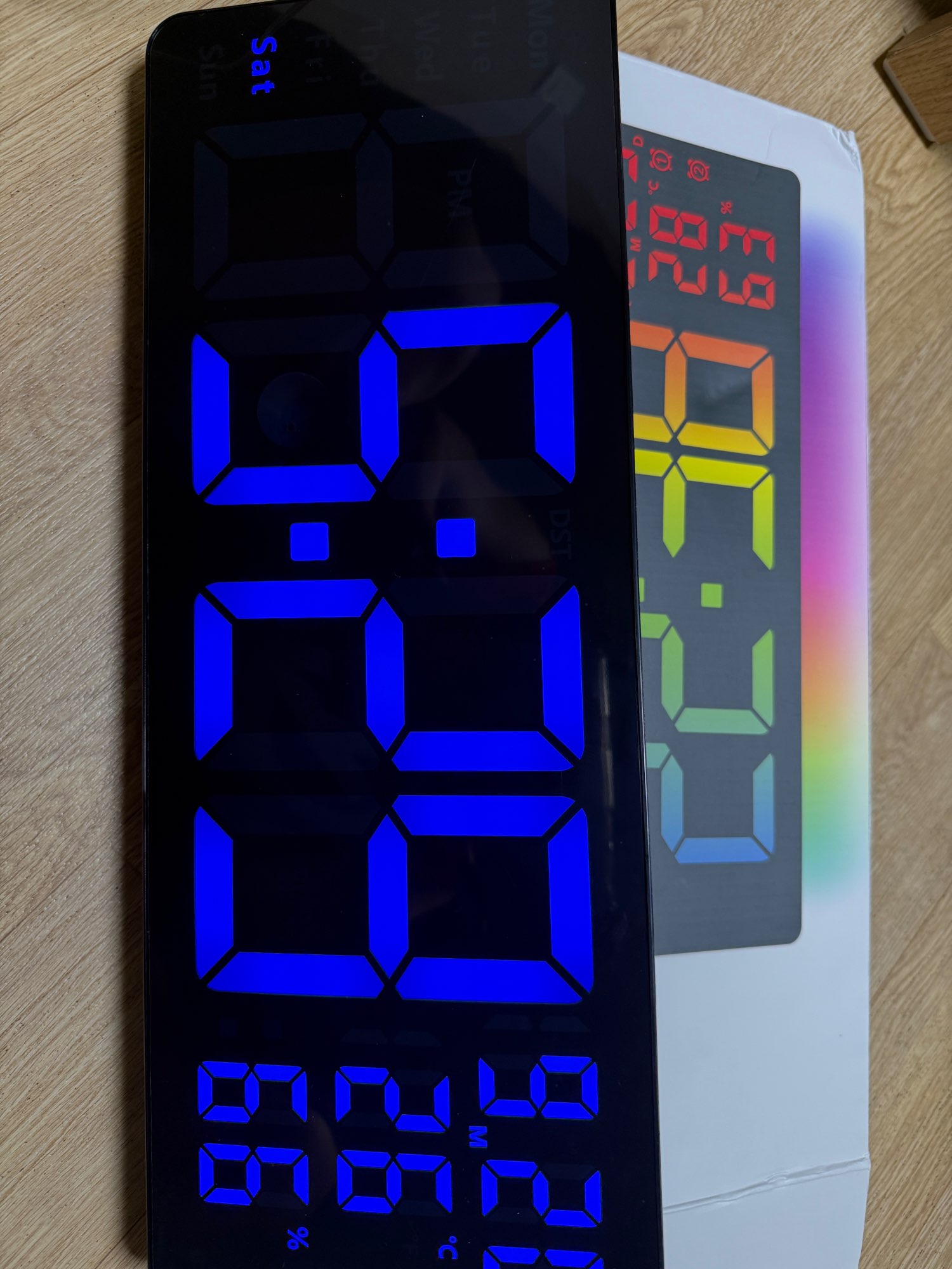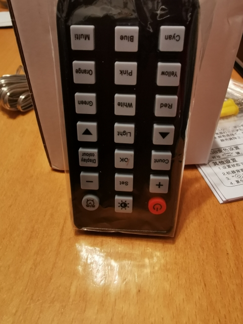 Very good quality-price. With the remote you can change colors, blue, white,...etc. You can set the time, date, and alarm. It's amazing. Very perfect size to see from afar. Arrived quickly and well packaged. A 10/10 seller.