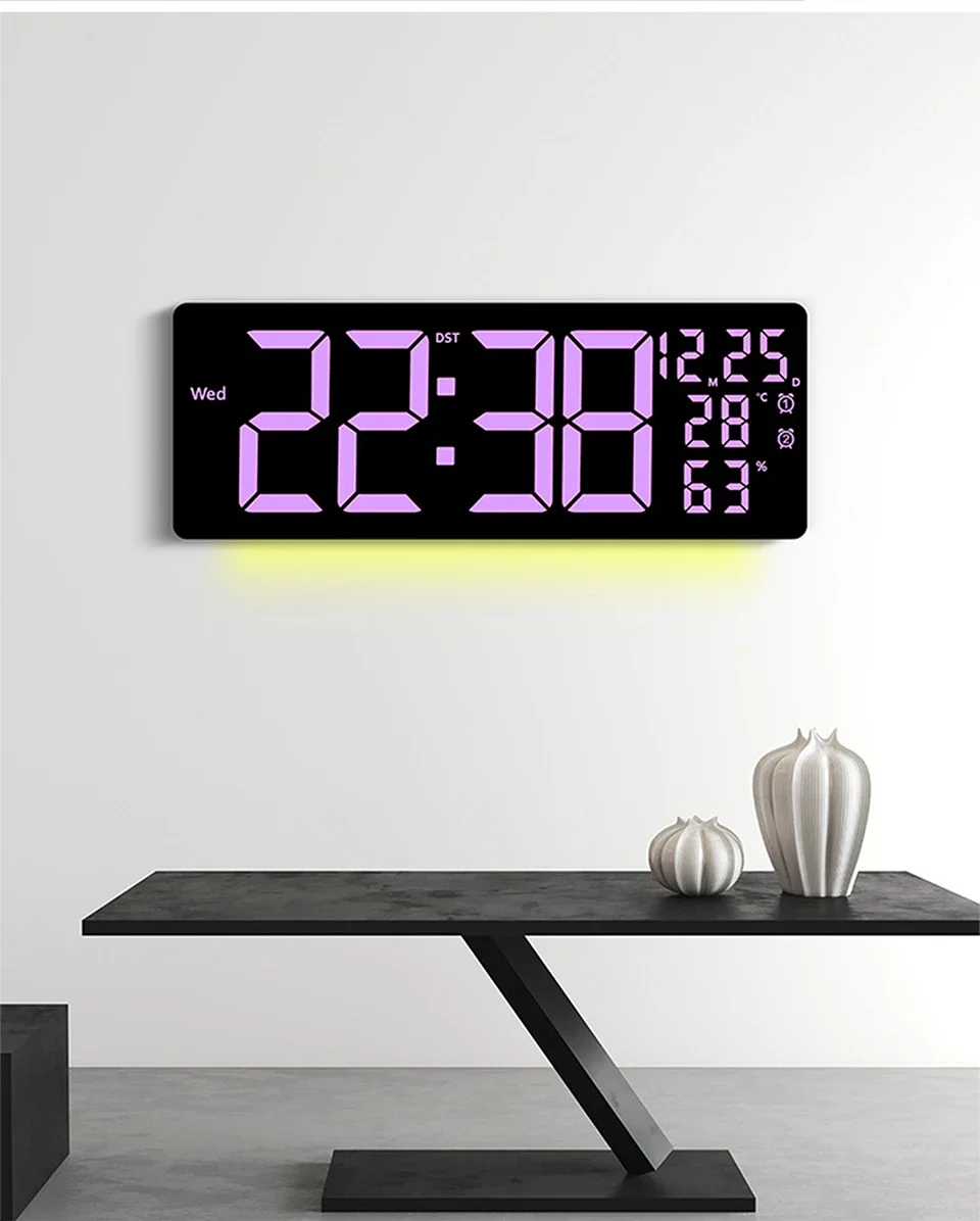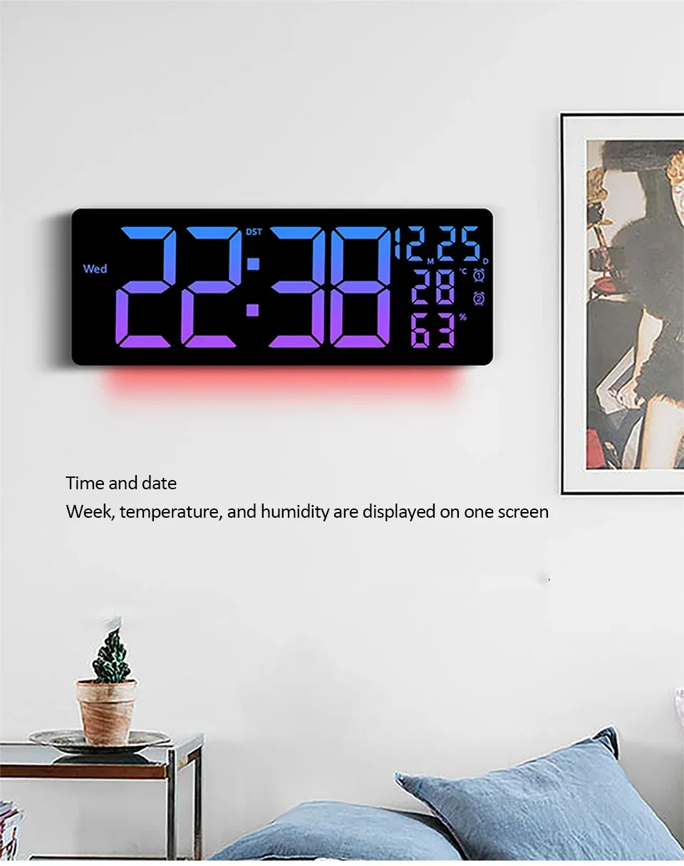 17″ Large Digital Alarm Clock with 11Colors & Dynamic RGB Display RGB LED Wall Clock with Colour Changing/Dual Alarm/Room Decor