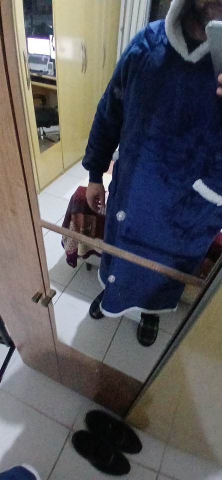 As described, very soft and warm... It has no tie/belt attached which is unfortunately but length is perfect, i am 182cm and it covers my ankles. I might buy again to keep spare, fast shipping, good seller