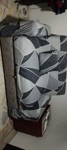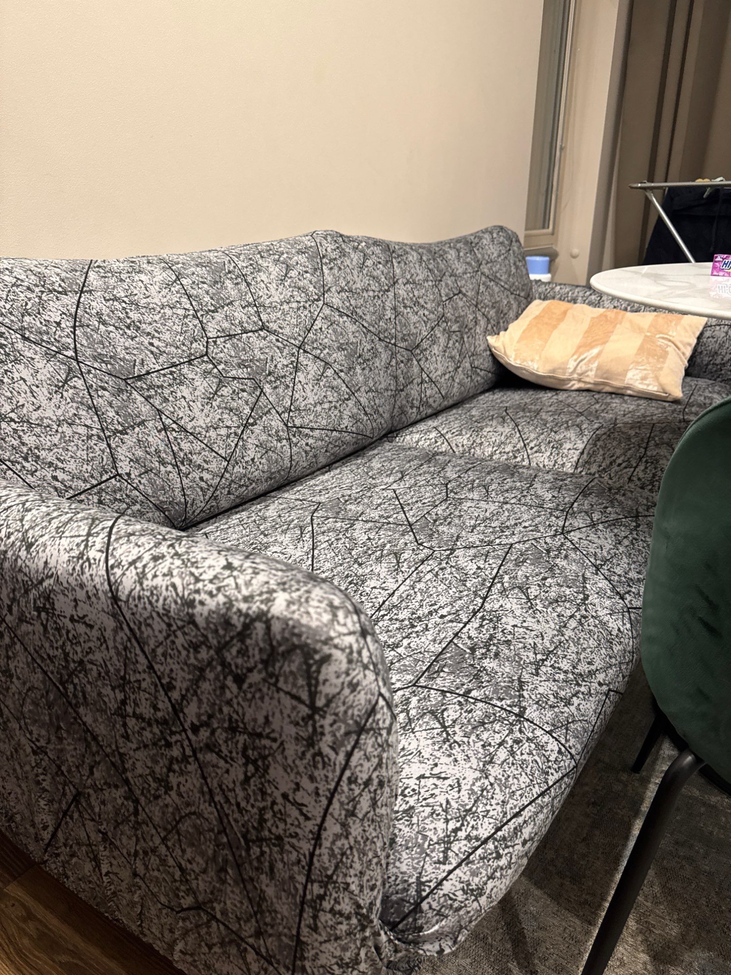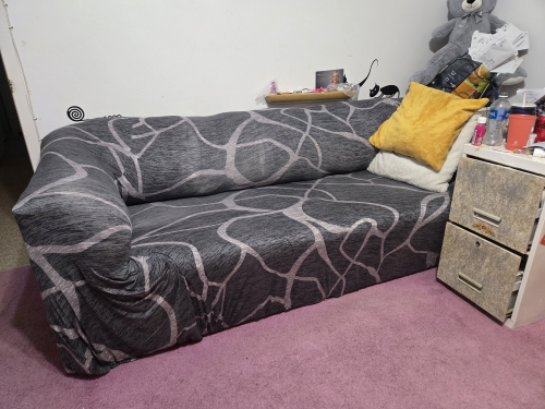 It looks great, much better than I expected and very, very good for the price. (~20 USD) I ordered a cover for three seats, but it looked great on the sofa bed. ☺️ I will buy again