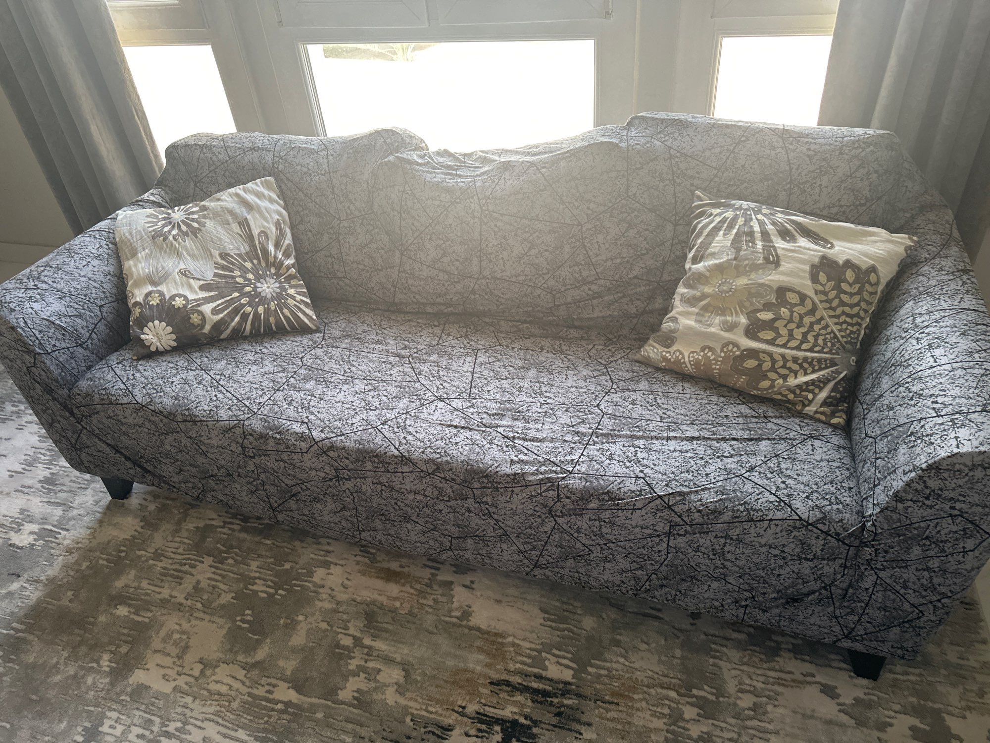 I have a 3 seater couch. The last time i ordered a slip cover it was just snug and it probably shrank some in the dryer. This time i ordered a 4 seater cover and its perfect. With excess. Have not washed it yet. It is very soft and stretchy. Beautiful pattern. Your takeaway is to order one size larger than you think you'll need.