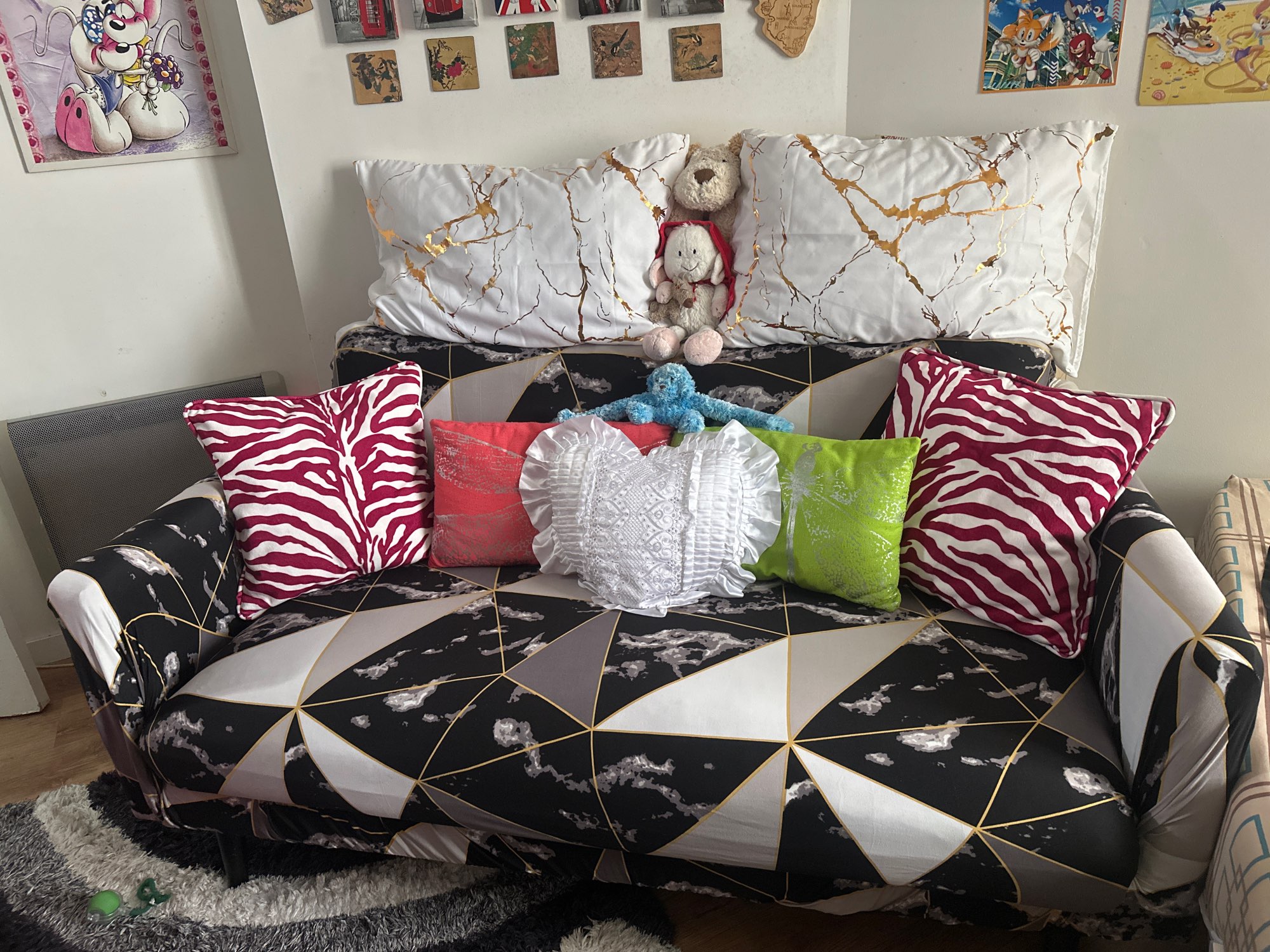 Very happy with my order! The cover is really pretty, of good quality, and it gives a new look to my sofa. She adapts well and the performance is great. I recommend without hesitation!