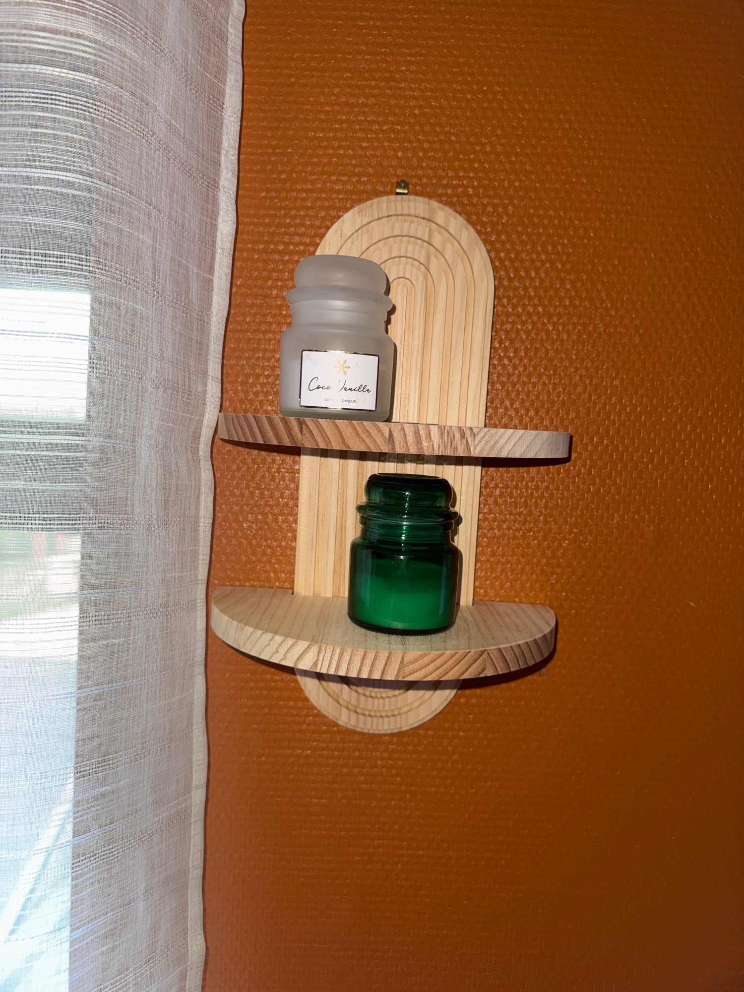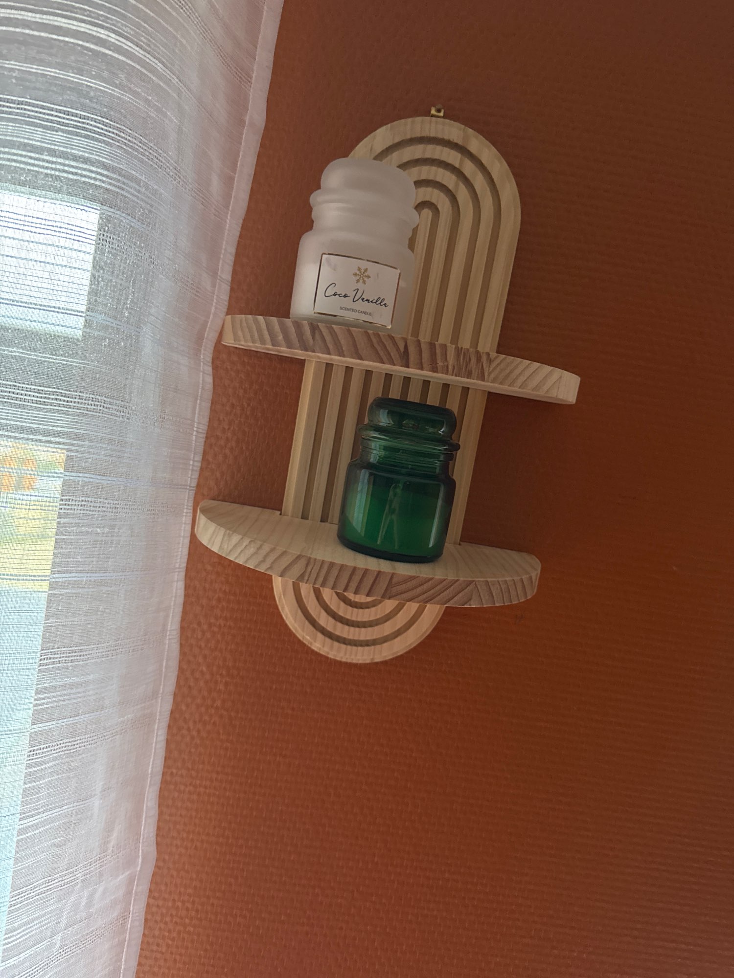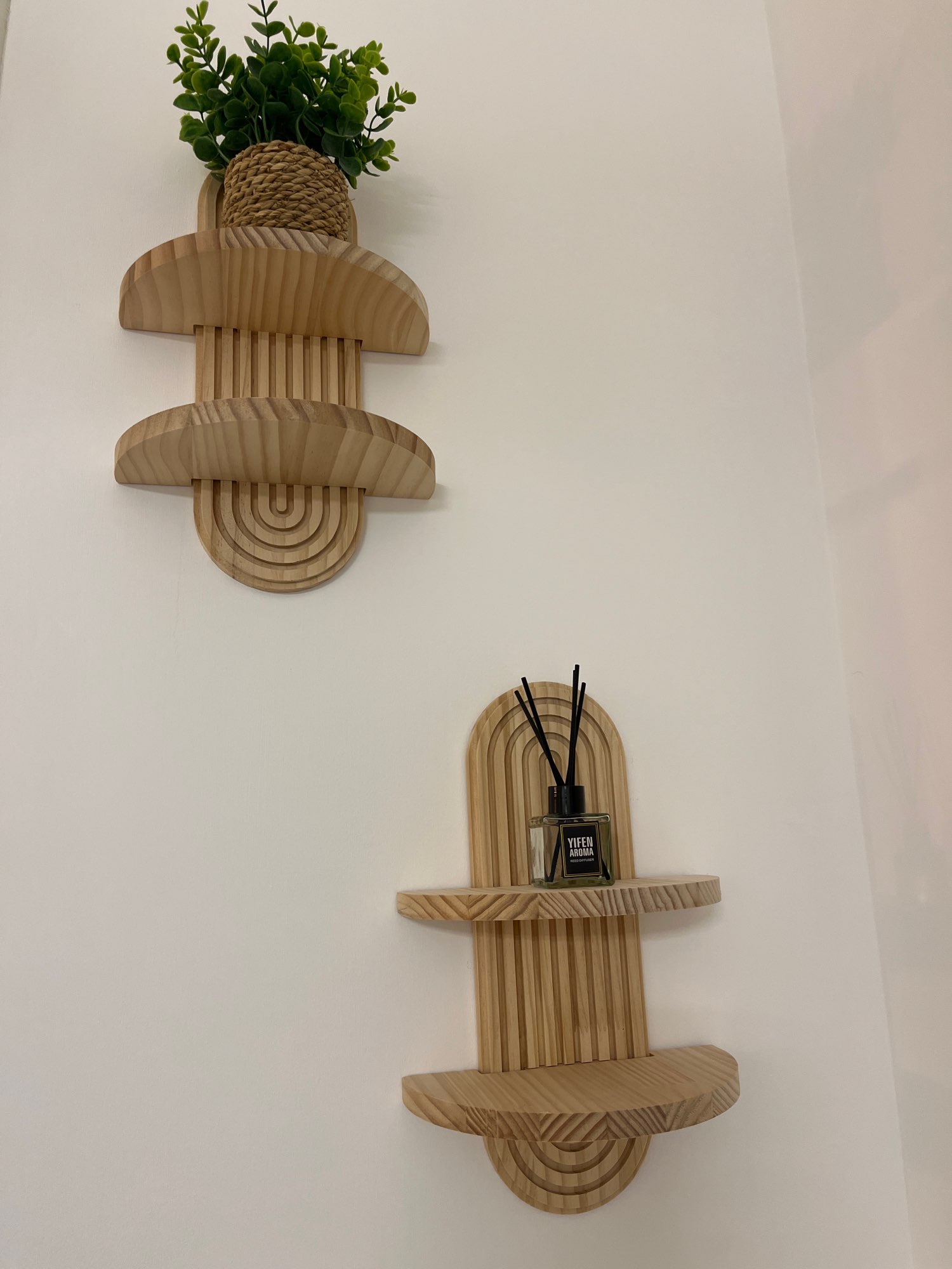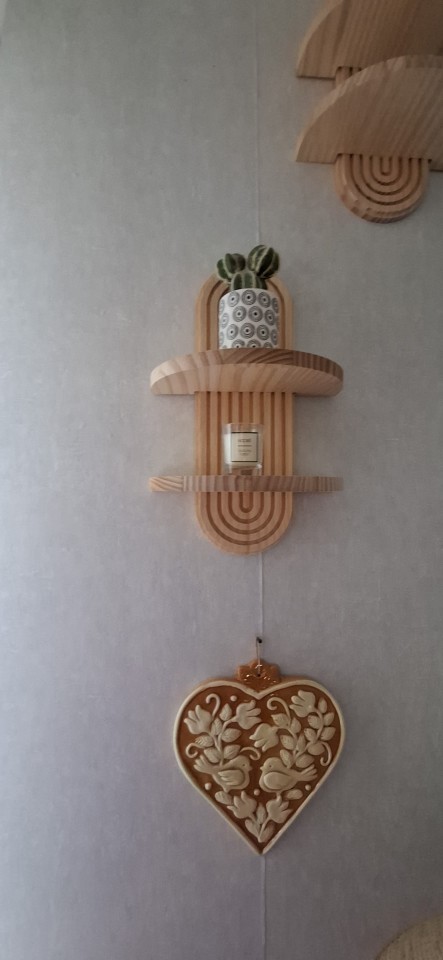 The boho style wooden wall shelves add a touch of ethnic charm to your modern home decor, creating a unique visual appeal.