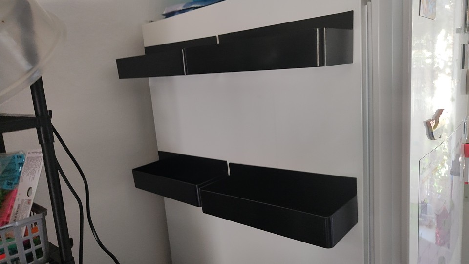 They look phenomenal and the magnet is much stronger than I imagined, stable and comfortable. Tip: The black coffee jars from Ikea fit just right, match well, and give a magnificent feeling of tidiness.