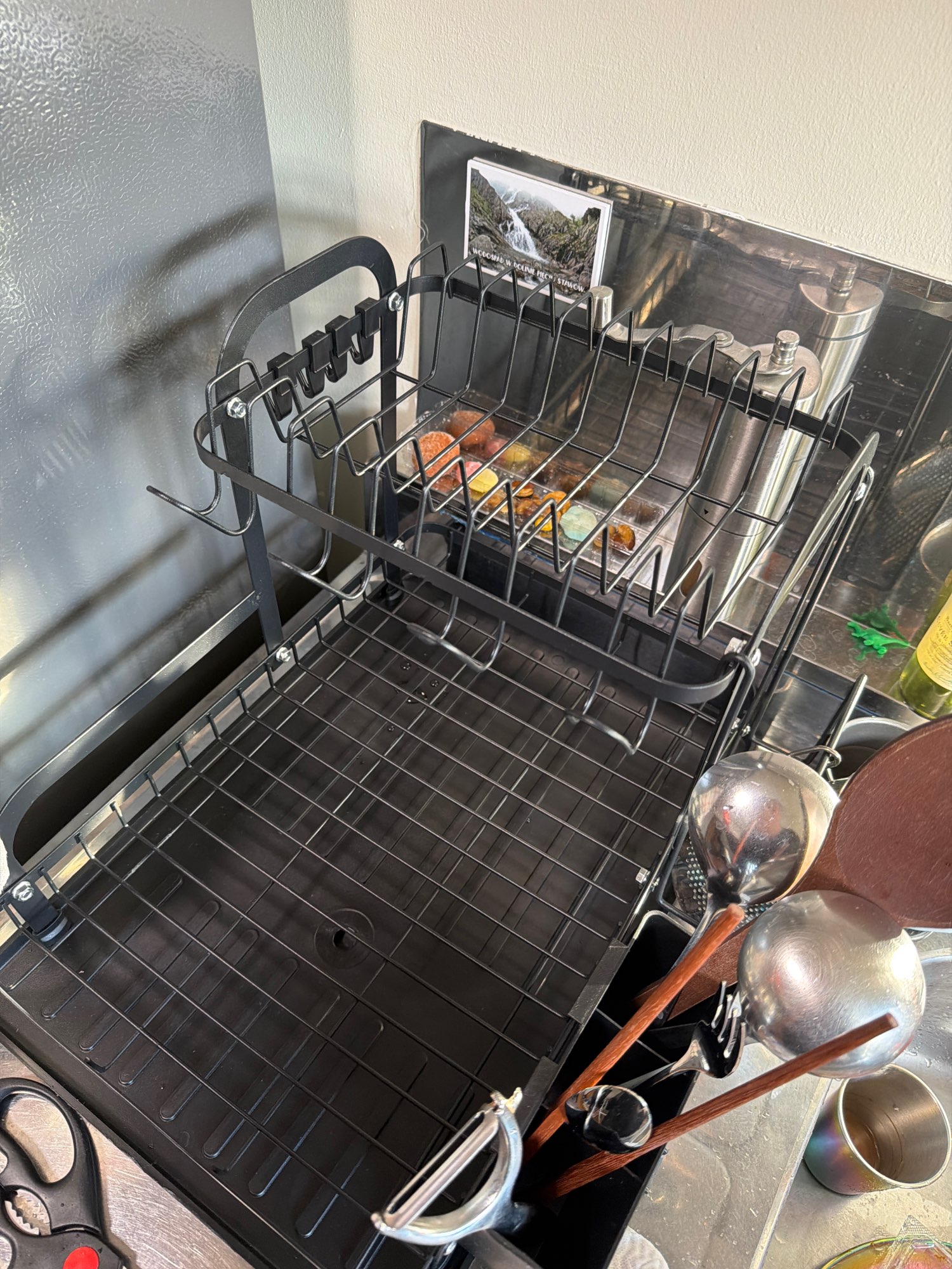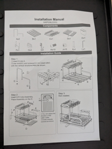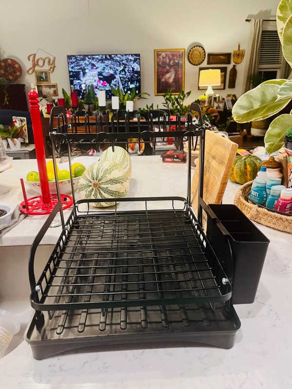 This item came to me when promised and that was over the holidays when i made this order. This is plastic and it'll be easy to maintain when cleaning it so i'm happy about that. I have an open kitchen floor plan and i hand-wash dishes a lot so i needed a two-level rack, especially since my sink is in the island and not under a cabinet. If you have a floor plan like mine, opt for a two-level rack like this (unless you have higher cabinets). For now it doesn't appear that i'll need to put a wash mat underneath to catch and water, but if i do i'll put it there and update my comment.