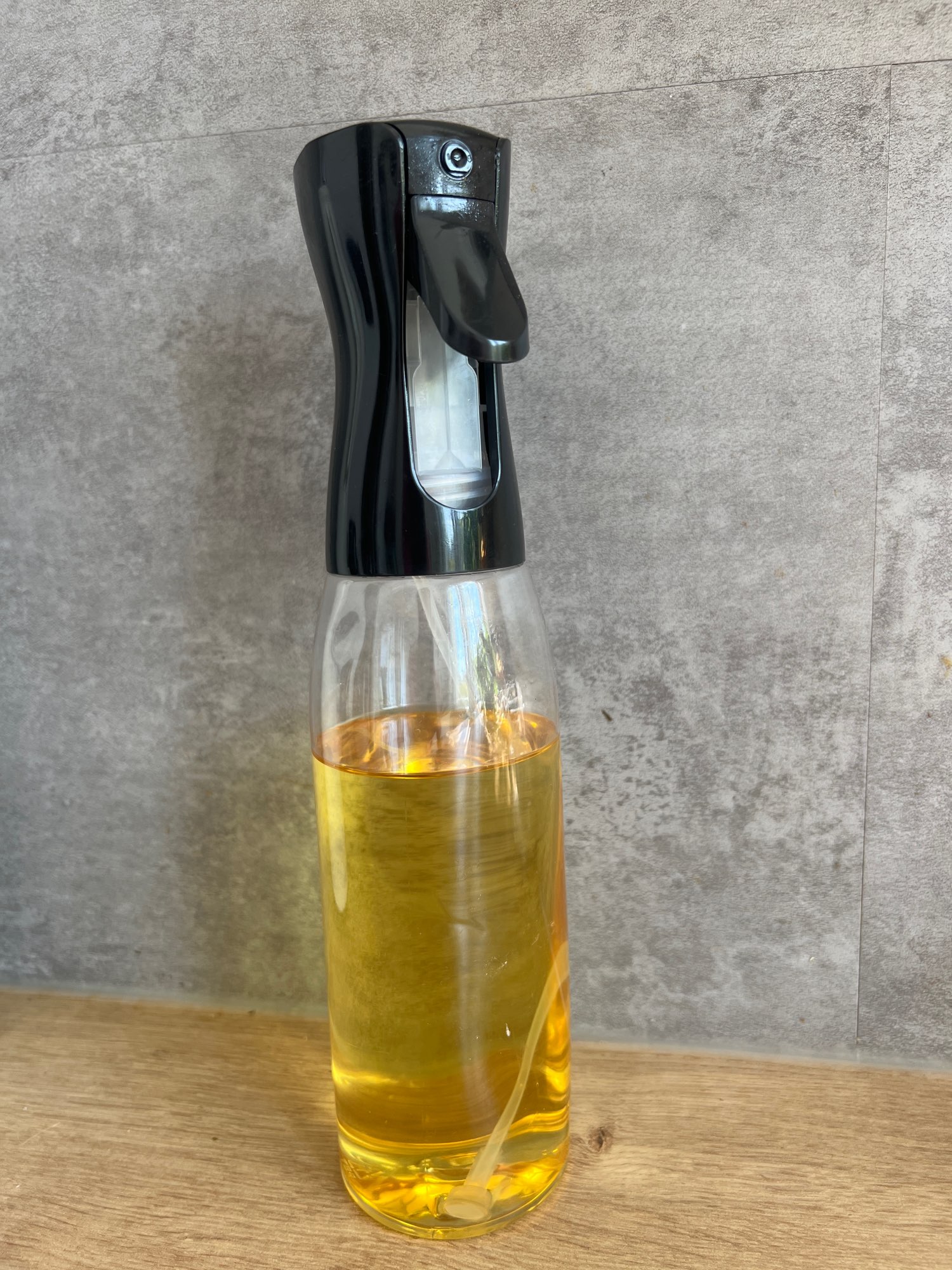 The truth is it's good, it sprays the oil well, I've been using it for several days now and everything has come out perfectly, it doesn't get stuck and it doesn't clog either.