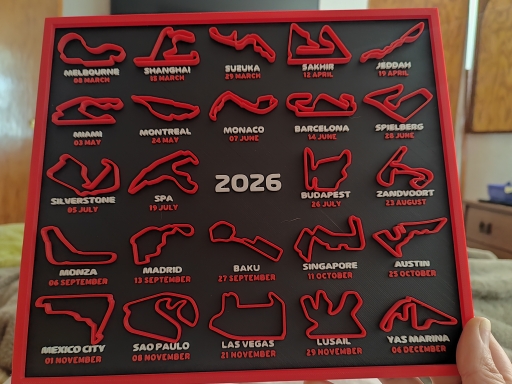 3D printed new product 2026 Formula 1 Calendar F1, 2026 racing calendar
