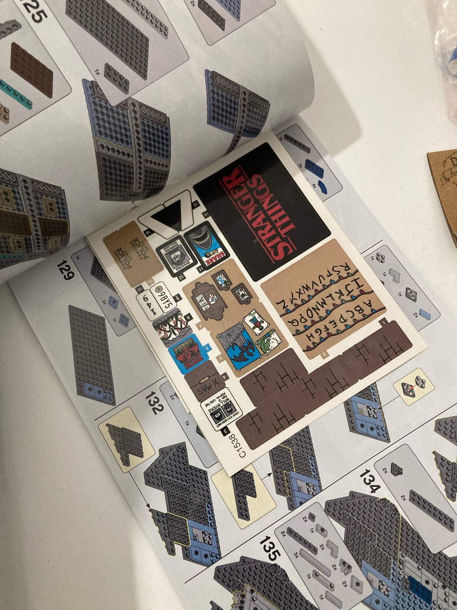 Perfect!! Arrived on time, no box, all bricks separated in numbered bags, including stickers and instruction manual. No missing pieces and identical to the original. I recommend it to all Stranger Things fans.