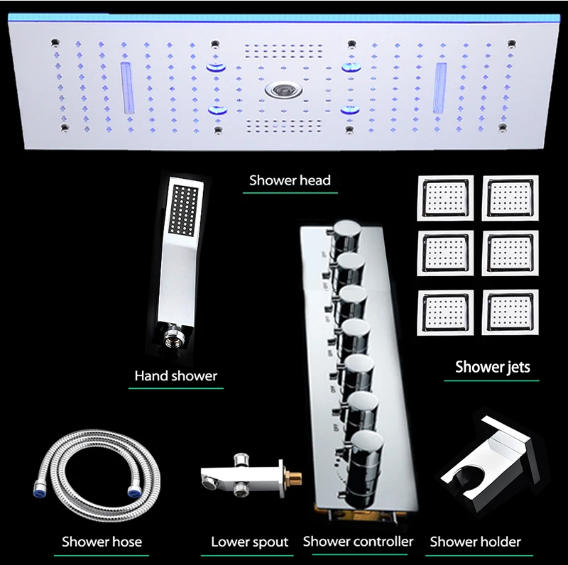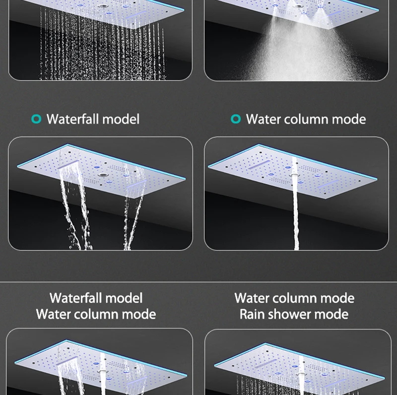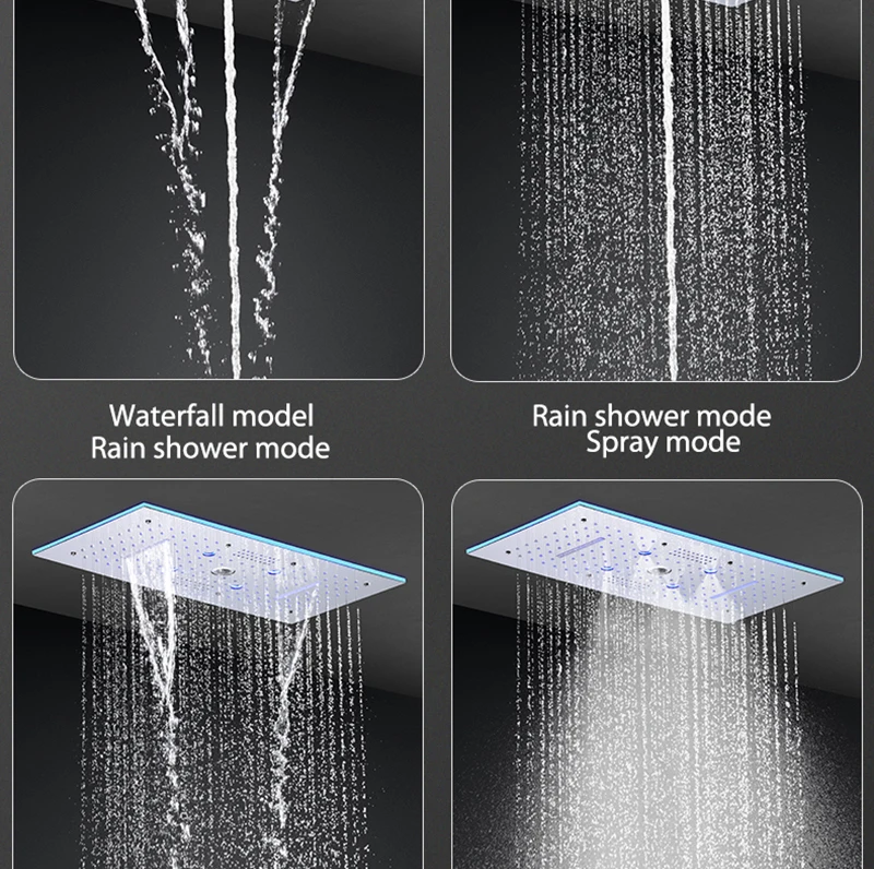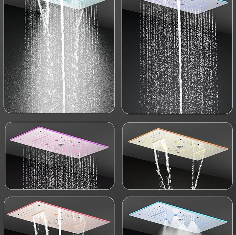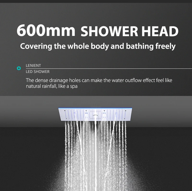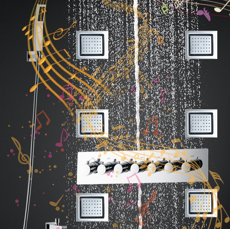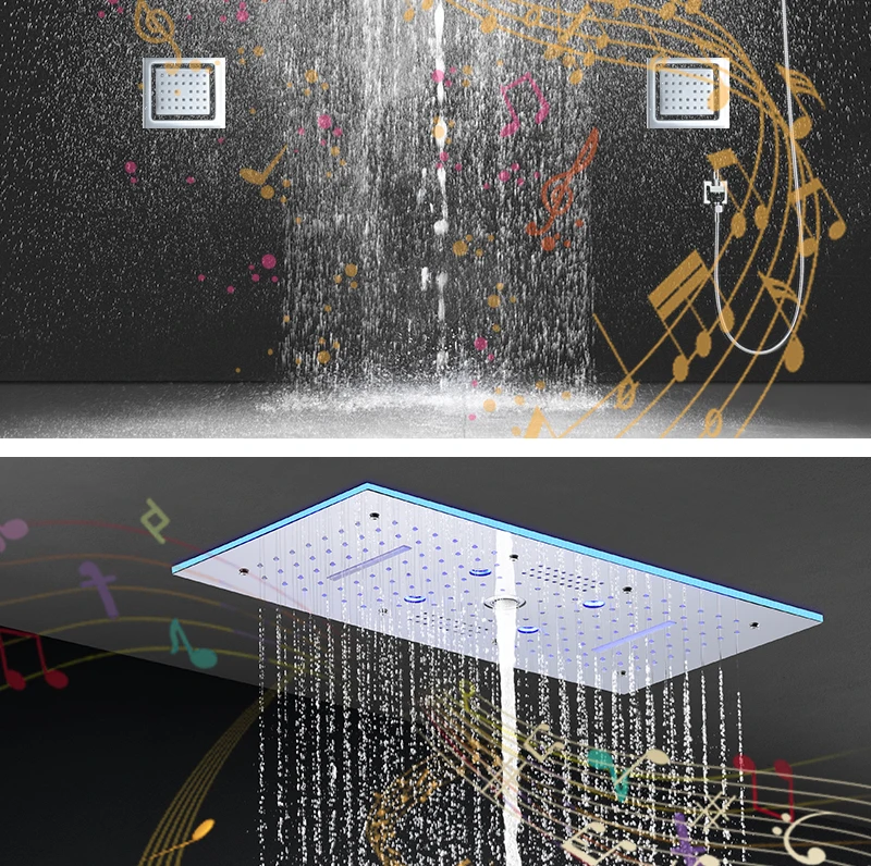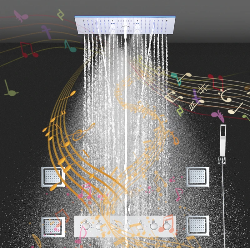 24×12 Inch 600x300mm Bluetooth Music LED Shower Head Panel Faucet Rain Mist Waterfall Column Thermostatic Mixer Valve Set