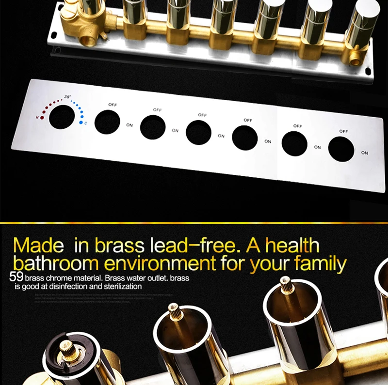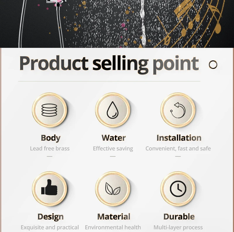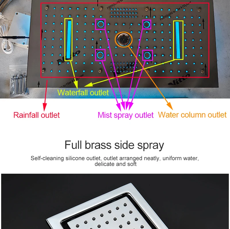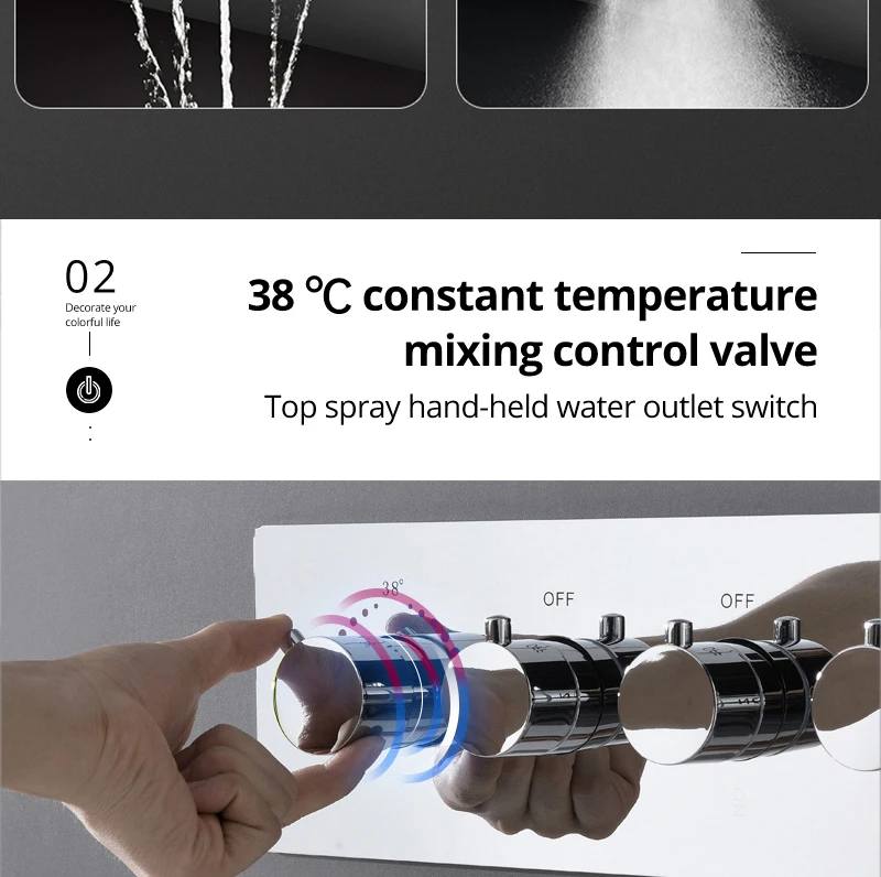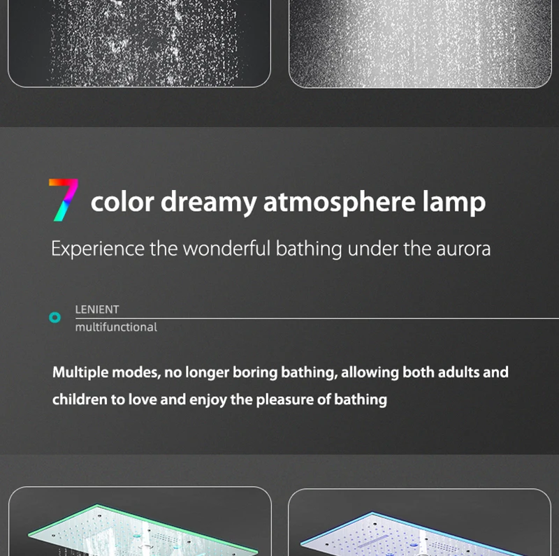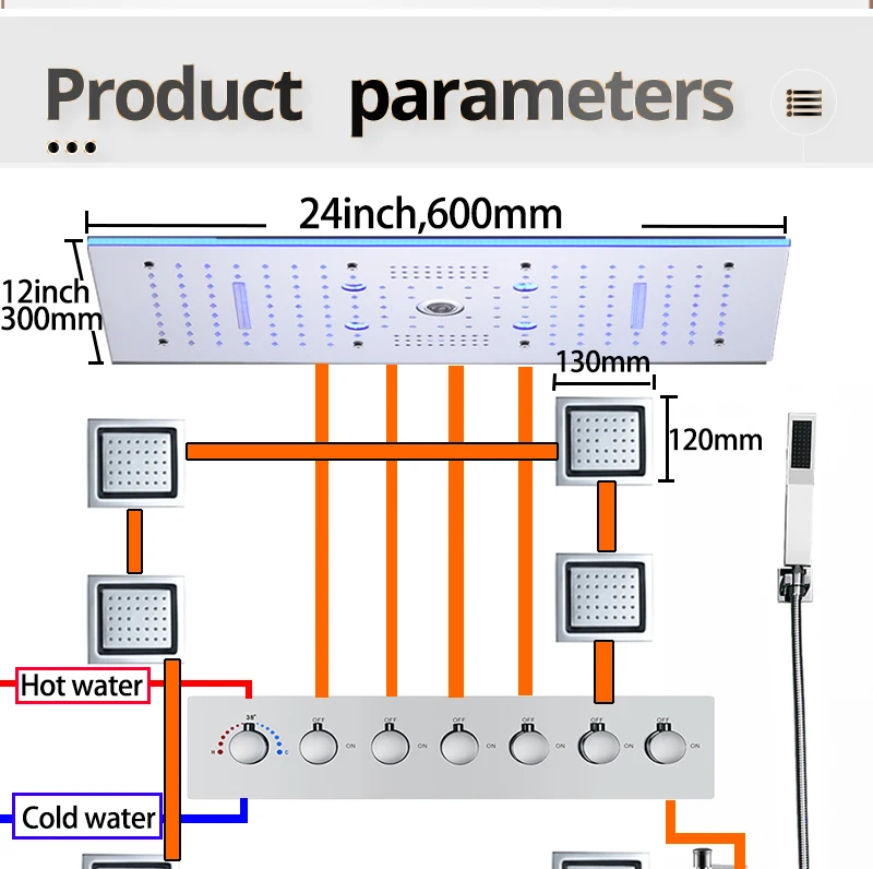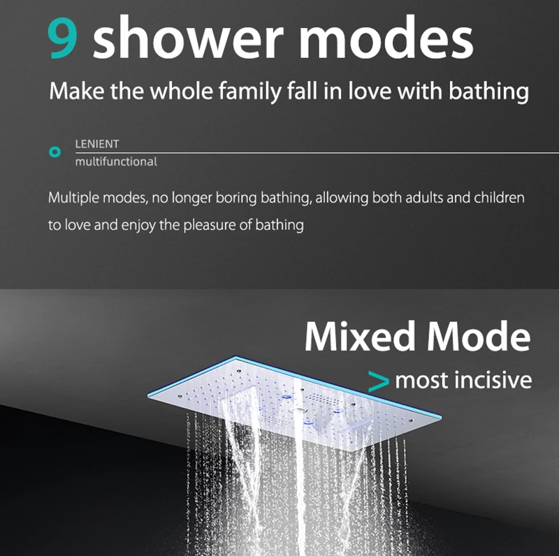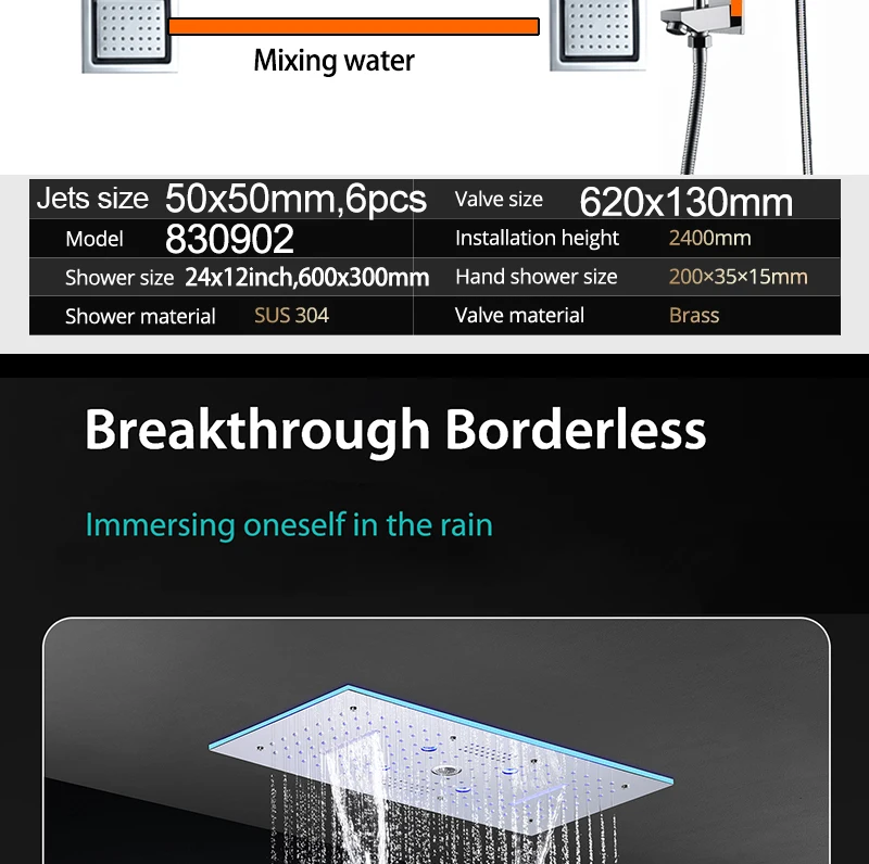 24×12 Inch 600x300mm Bluetooth Music LED Shower Head Panel Faucet Rain Mist Waterfall Column Thermostatic Mixer Valve Set