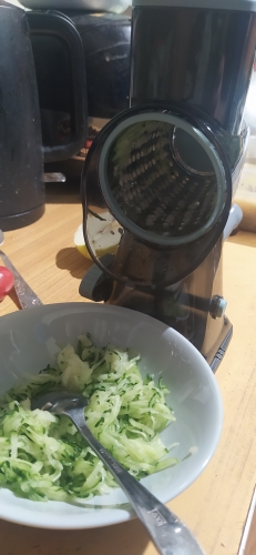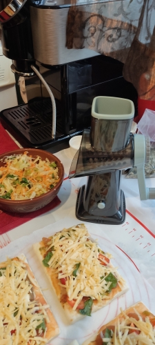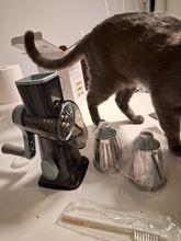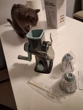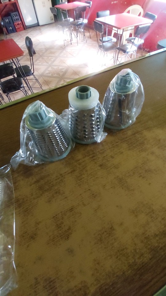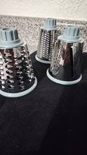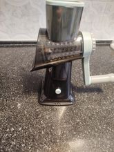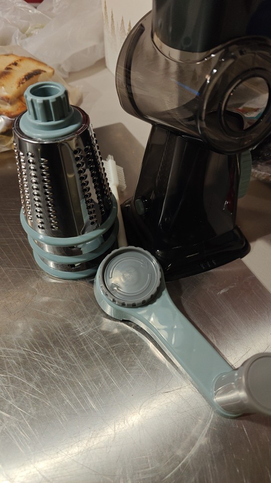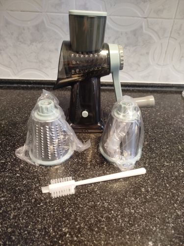 Excellent product with 3 interchangeable steel blades, possibility to slice, grate finely or coarsely, I am very satisfied with the purchase.