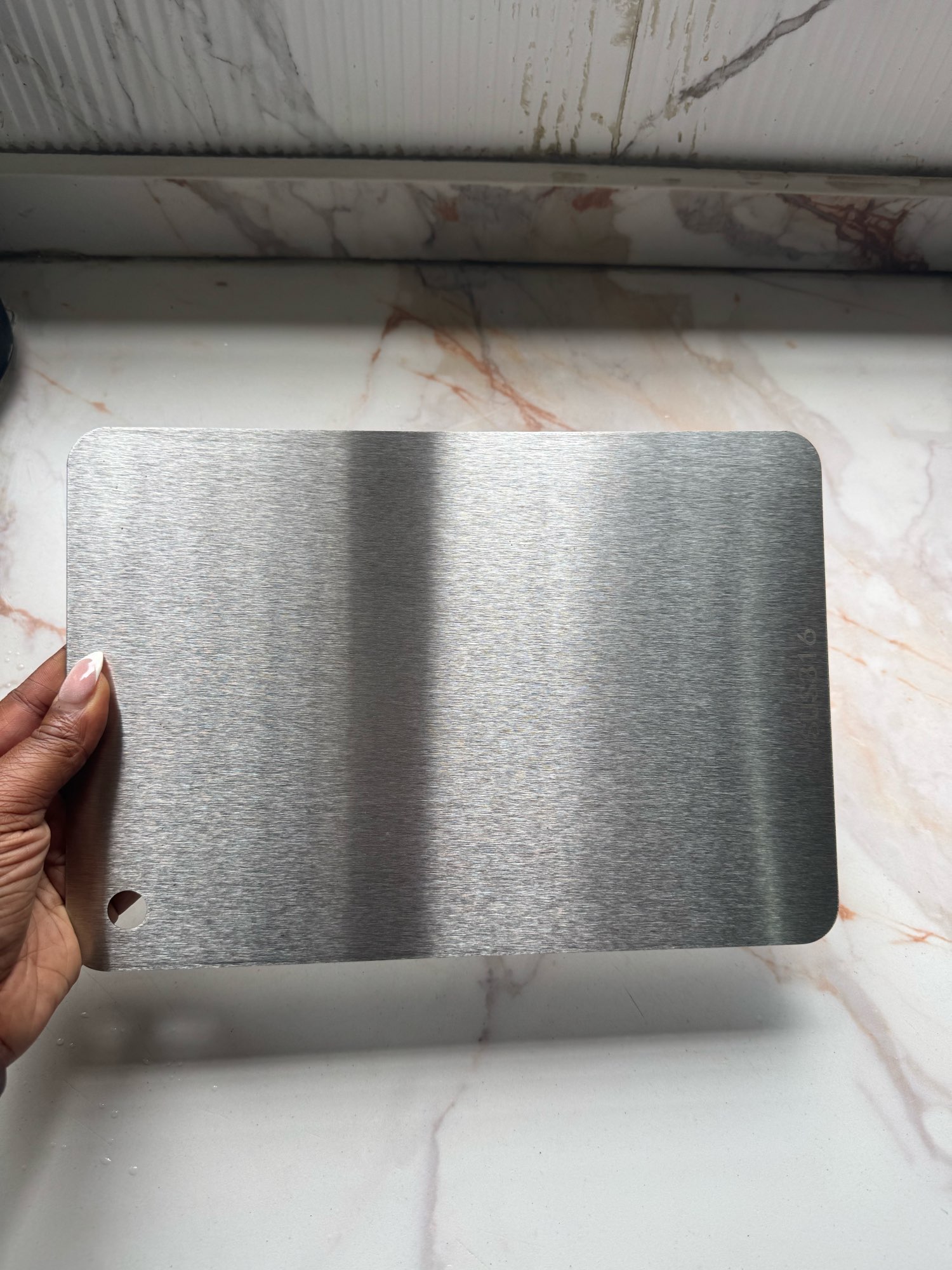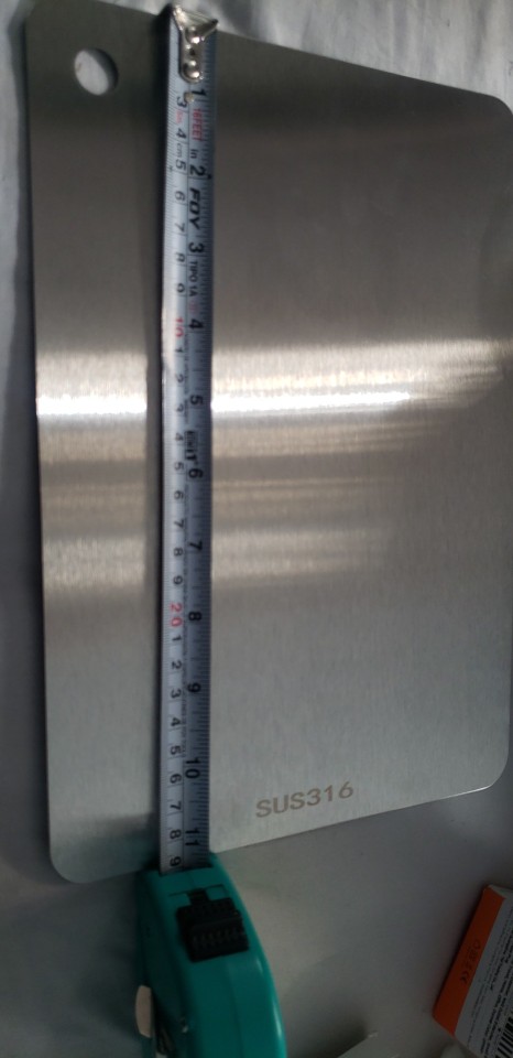 The board arrived on time and in good condition, well-packaged without any dents or bends. As for the material, it is made of quality 316 steel and its thickness also meets my expectations. I bought the largest one and it is perfect...