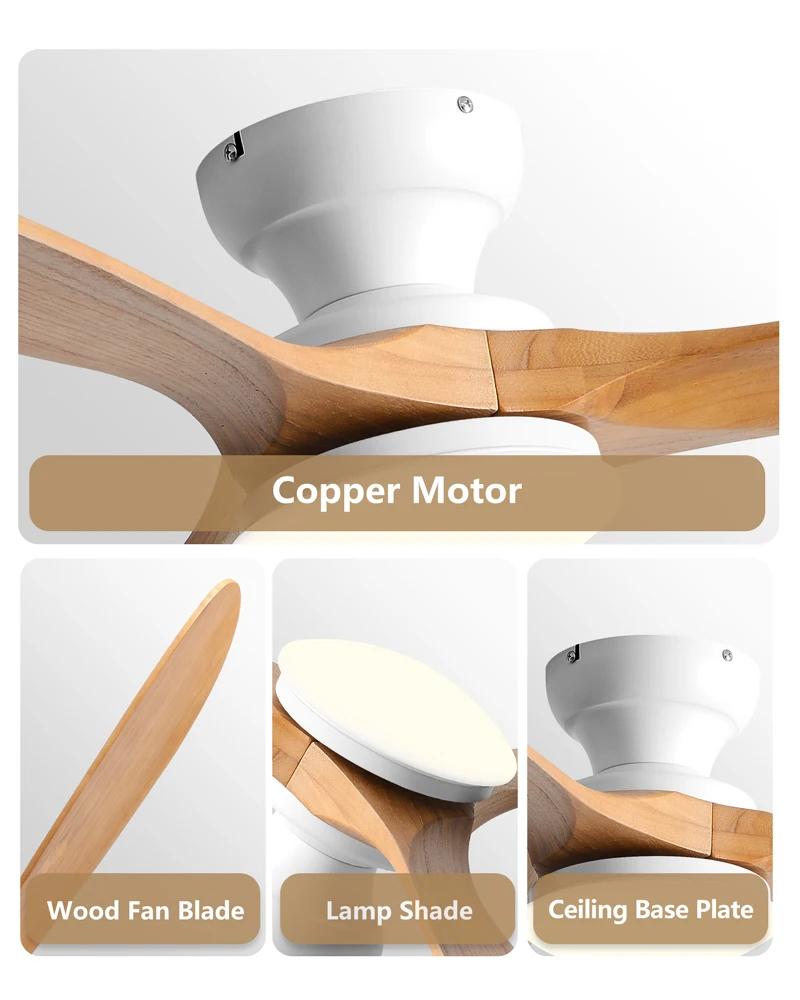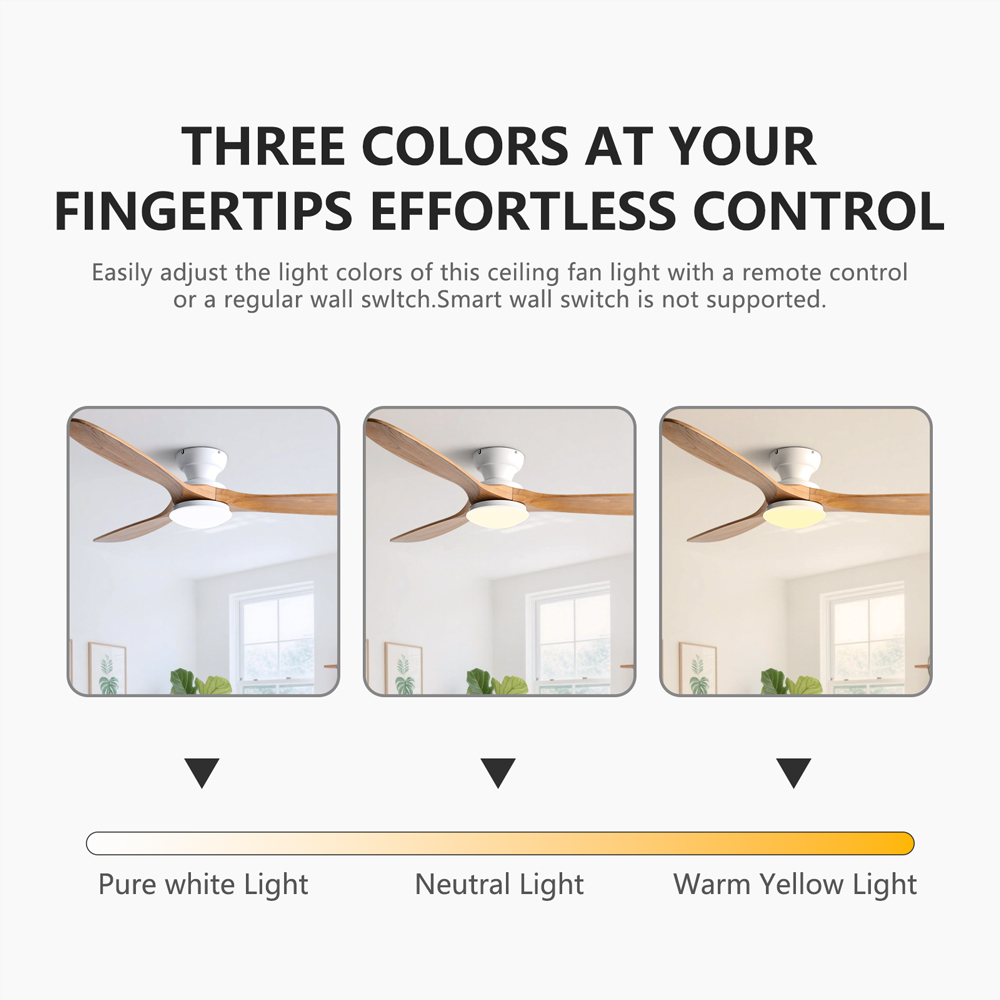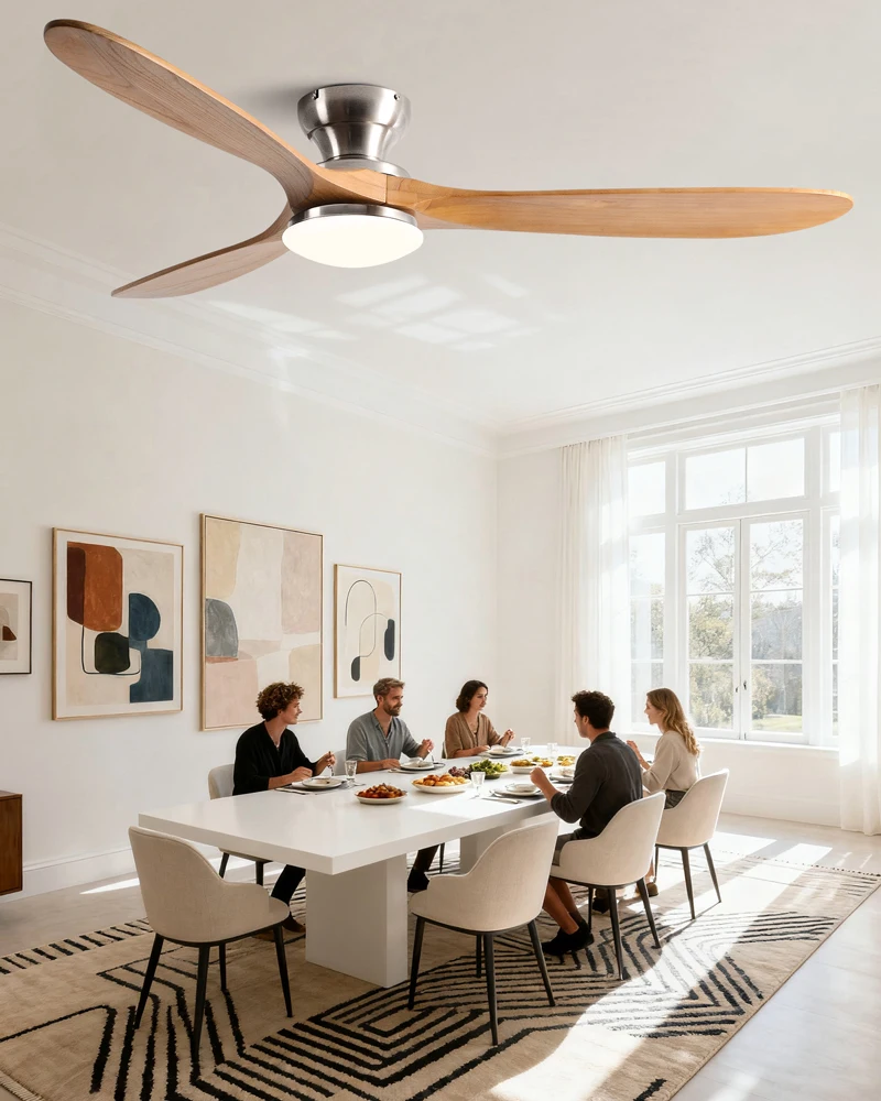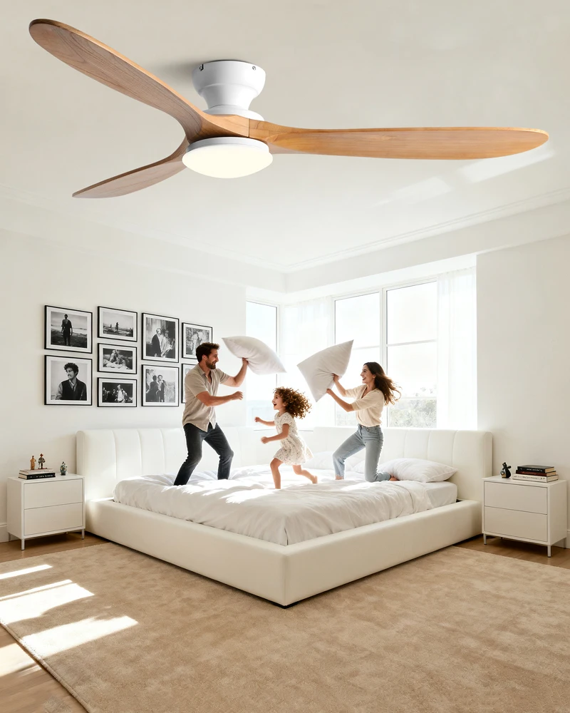 The neutral tone of the wooden blades and smooth hardware seamlessly integrate into different rooms such as bedrooms, living rooms, or dining rooms, making the lighting both stylish and practical, without attracting attention.