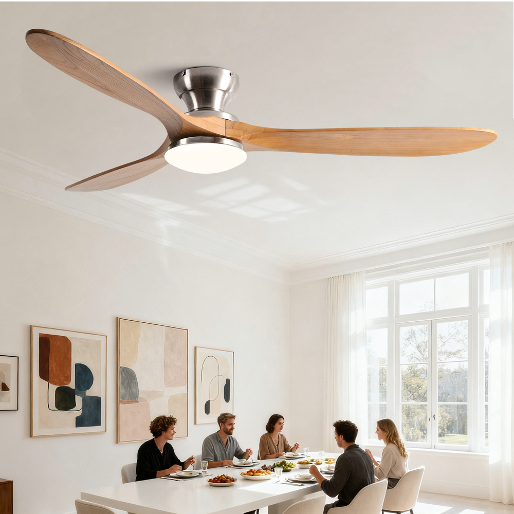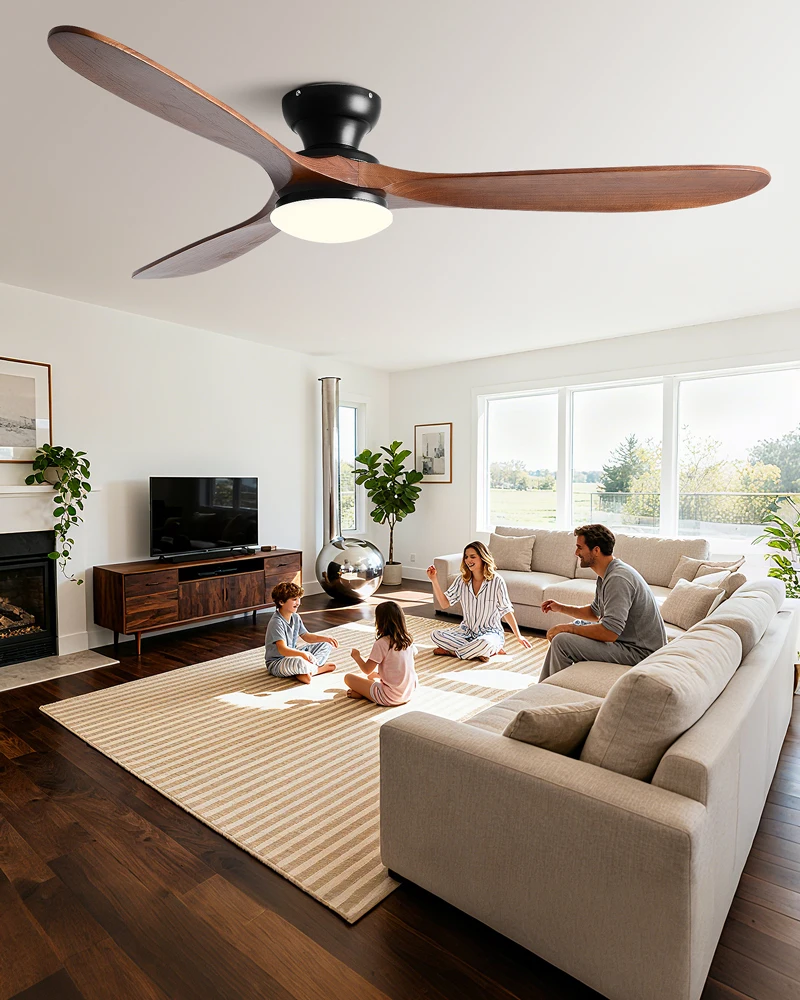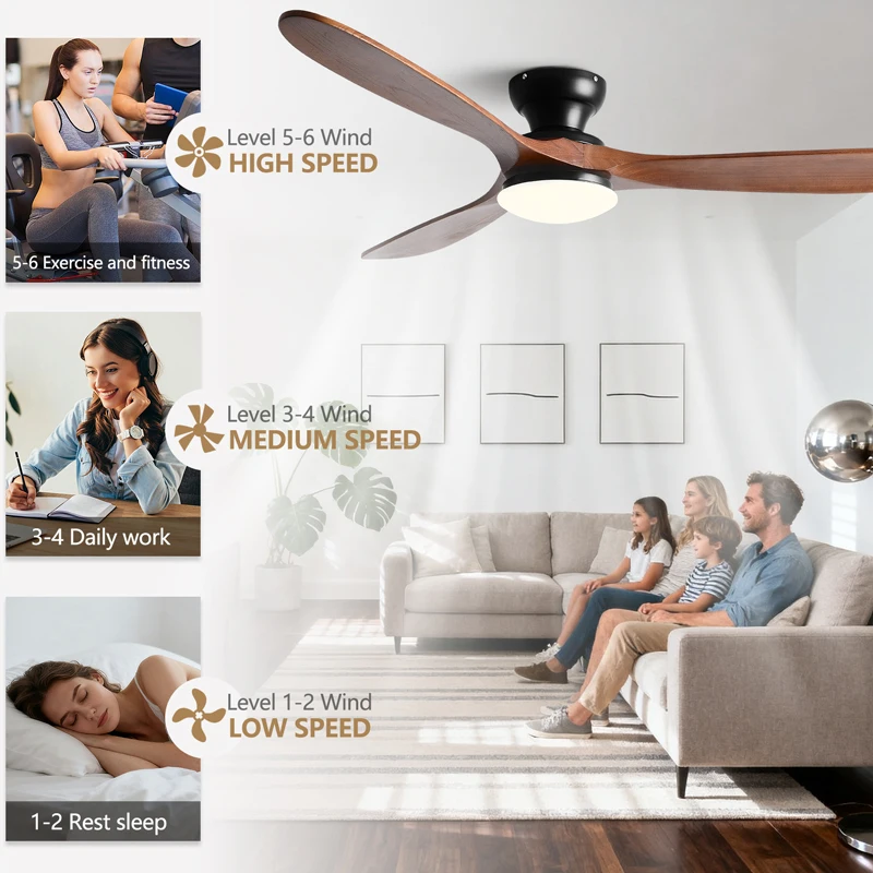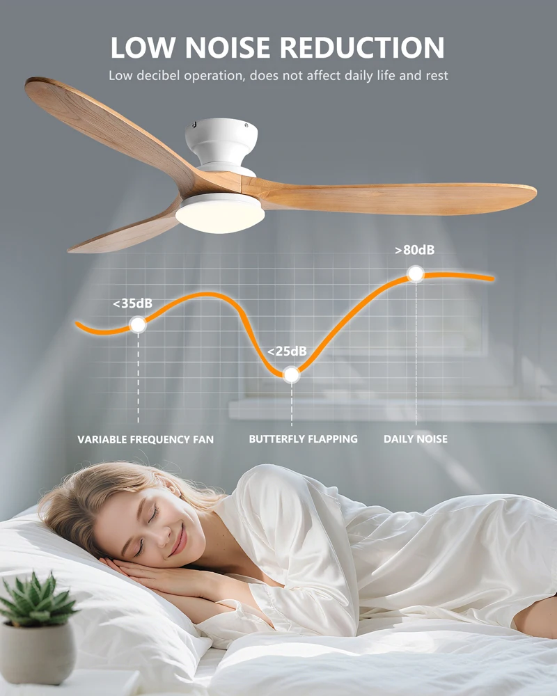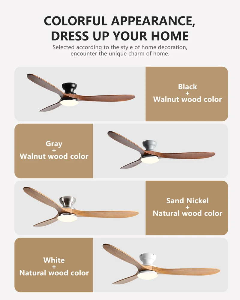 The neutral tone of the wooden blades and smooth hardware seamlessly integrate into different rooms such as bedrooms, living rooms, or dining rooms, making the lighting both stylish and practical, without attracting attention.