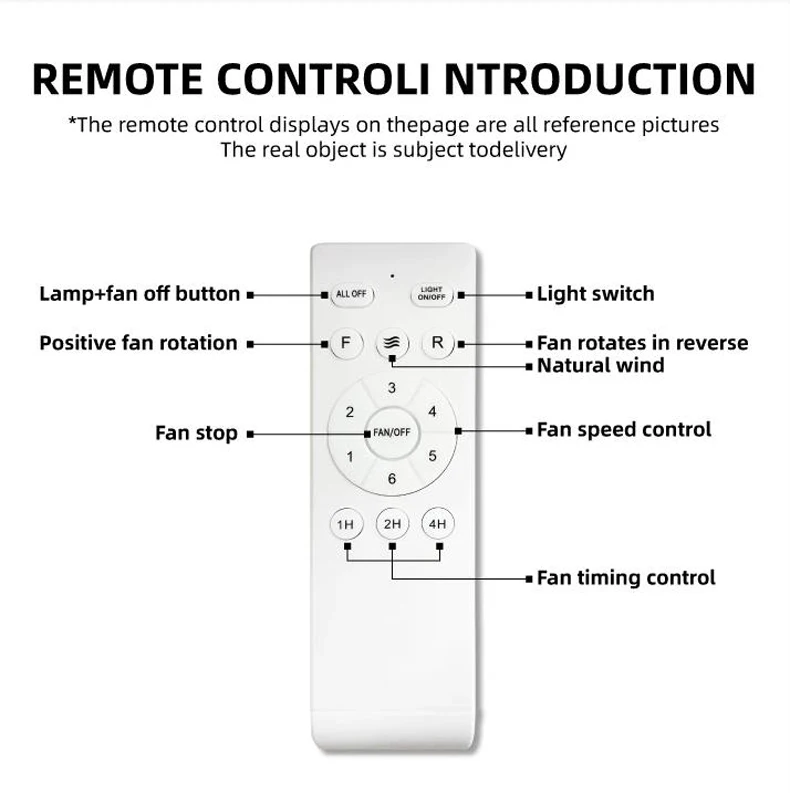 Equipped with a remote control, easy to operate. Users can control different functions through simple buttons, adjusting the fan speed, turning on/off lights, or dimming lights without getting up.