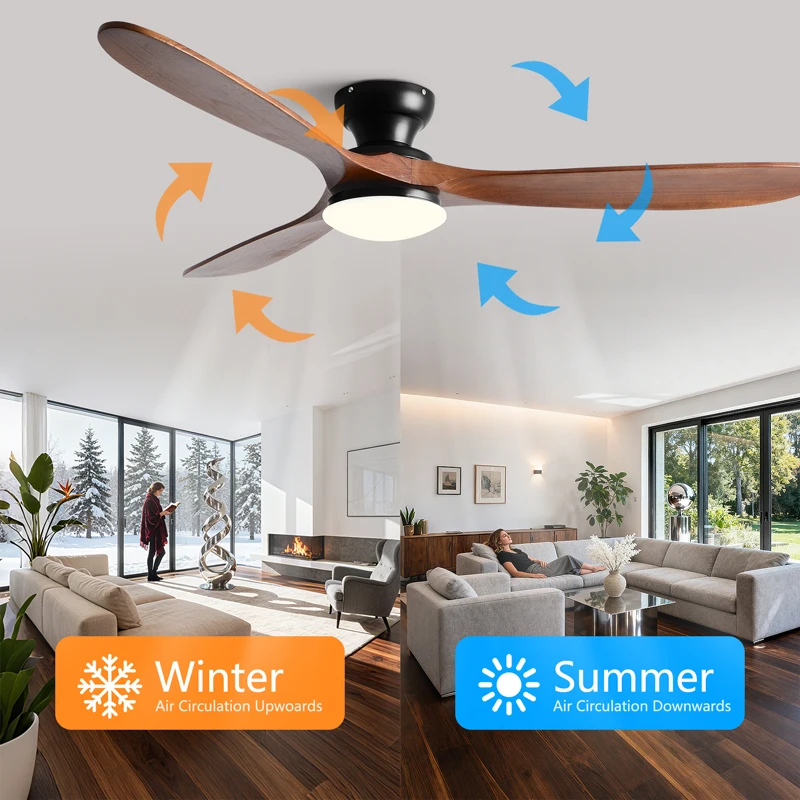 Solid wood blades are easy to clean and maintain, and LED bulbs in lighting fixtures have a longer lifespan than traditional bulbs, reducing the need for frequent replacement.