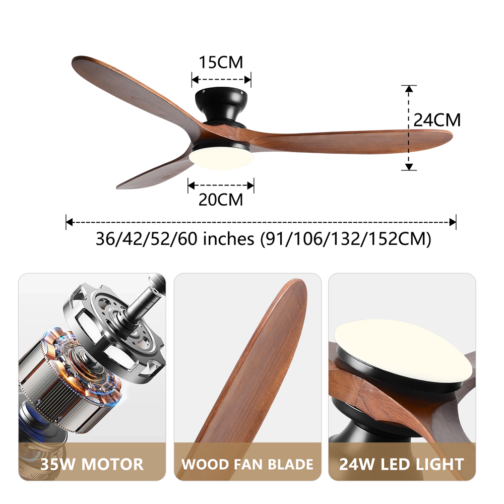 36/42/52inch Low Floor Ceiling Fan Light Remote Control