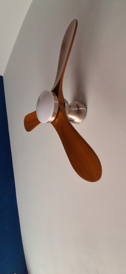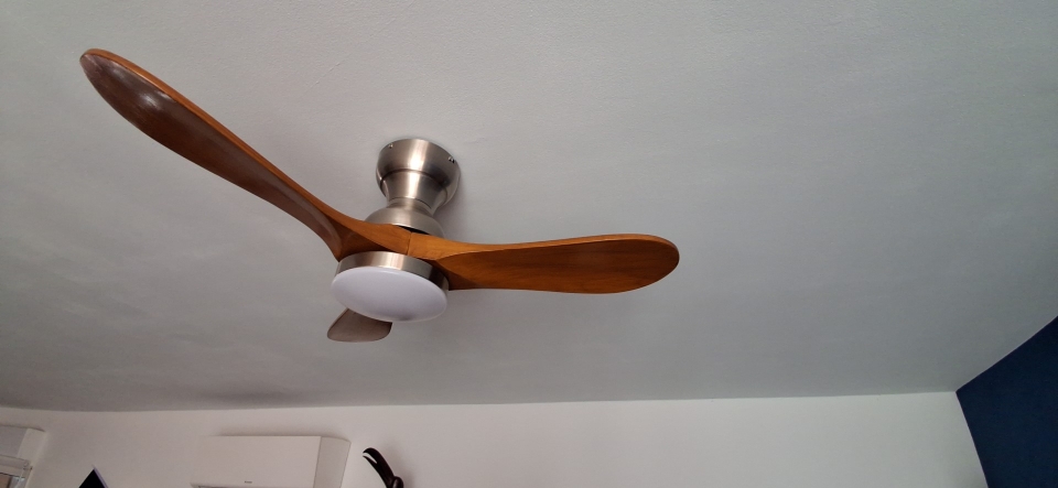 The neutral tone of the wooden blades and smooth hardware seamlessly integrate into different rooms such as bedrooms, living rooms, or dining rooms, making the lighting both stylish and practical, without attracting attention.