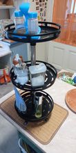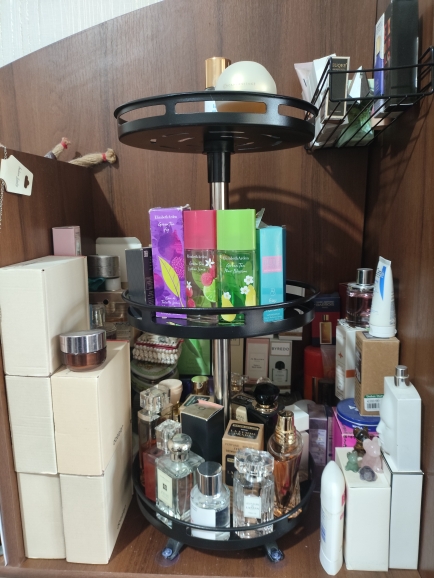 Super organizer. Stable, not flimsy, with suction cups at the bottom. Easily rotates and access to any perfume is now very easy. Just as I wanted.