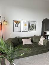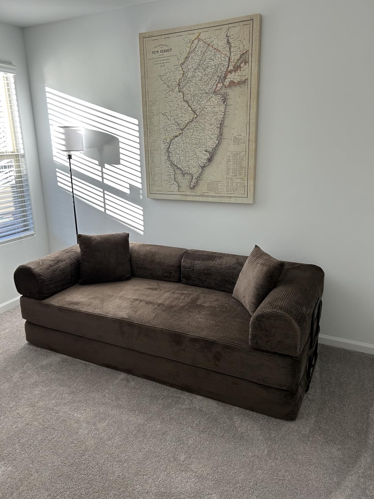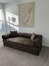We love this couch. It is extremely comfortable, and its perfect for customizing what you need it for in a given space. We usually have it flat on the floor as a guant dog bed since we have an elderly dog thats starting to have a hard time jumping up. We watch movies on it as a bed, snuggle with the dogs, hang out. It's perfect. And then we can turn it into a couch and have the whole room open. Its also light enough i can do all of that myself with heds. The fabric is soft, the foam is dense and supportive... I would recommend this to anyone.