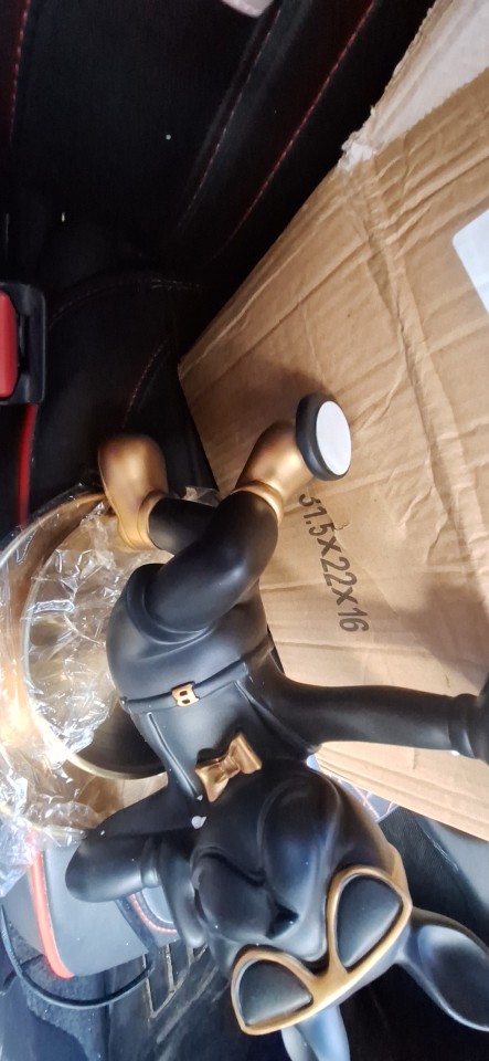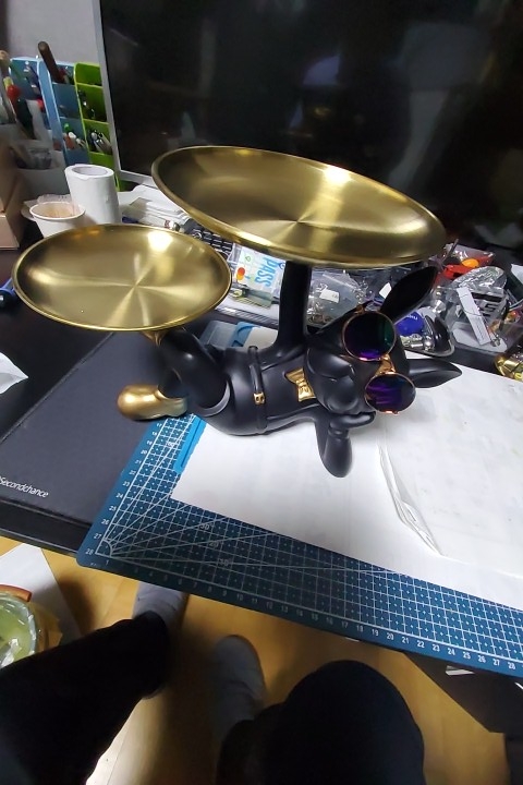The delivery arrived very securely. Securely fixed with Styrofoam to prevent shaking It's so nice that it arrived without any damage anywhere. The bulldog is sturdy and good. The plate is fixed with double-sided tape. I think it might fall off later. The product is good ~