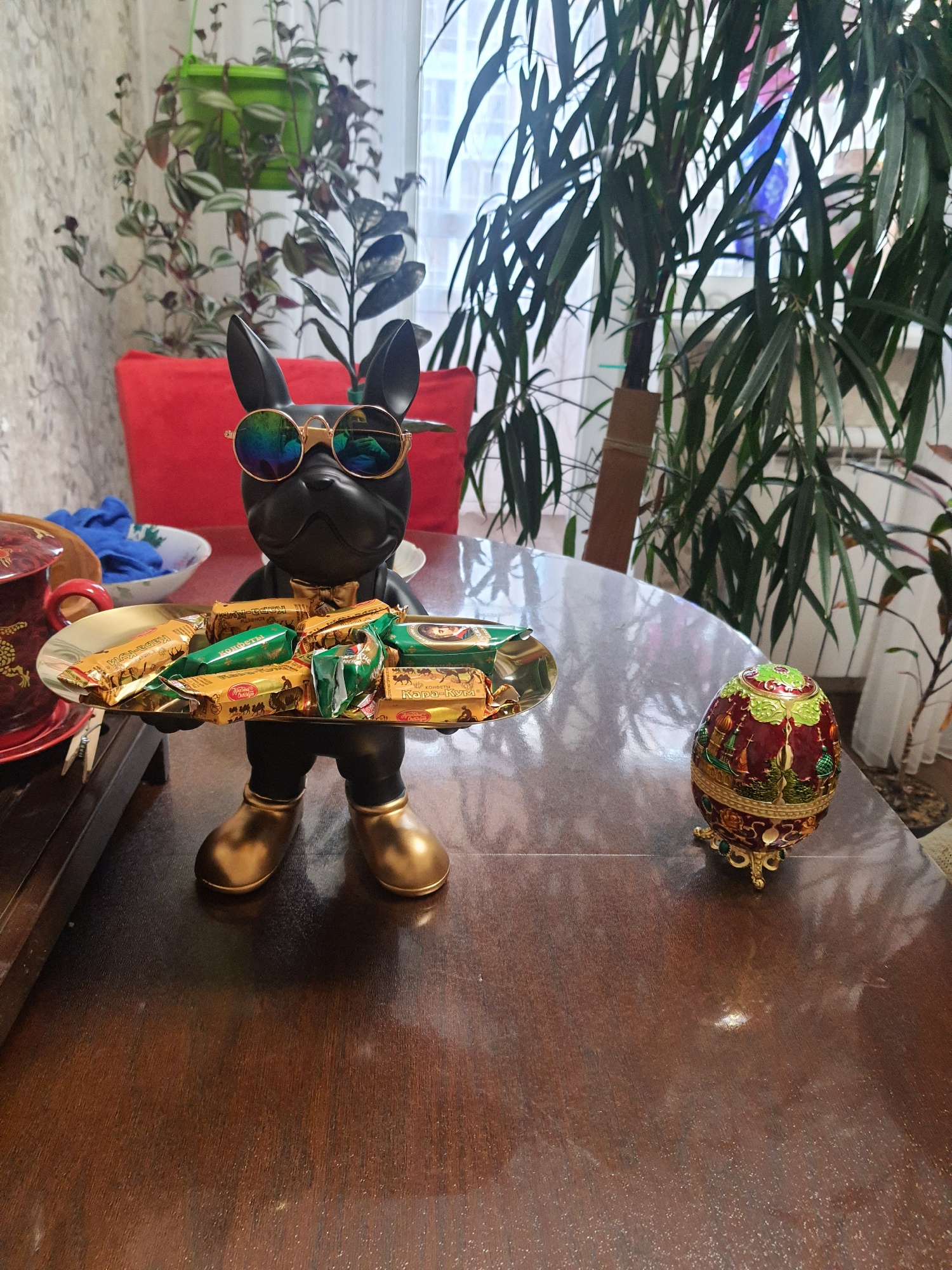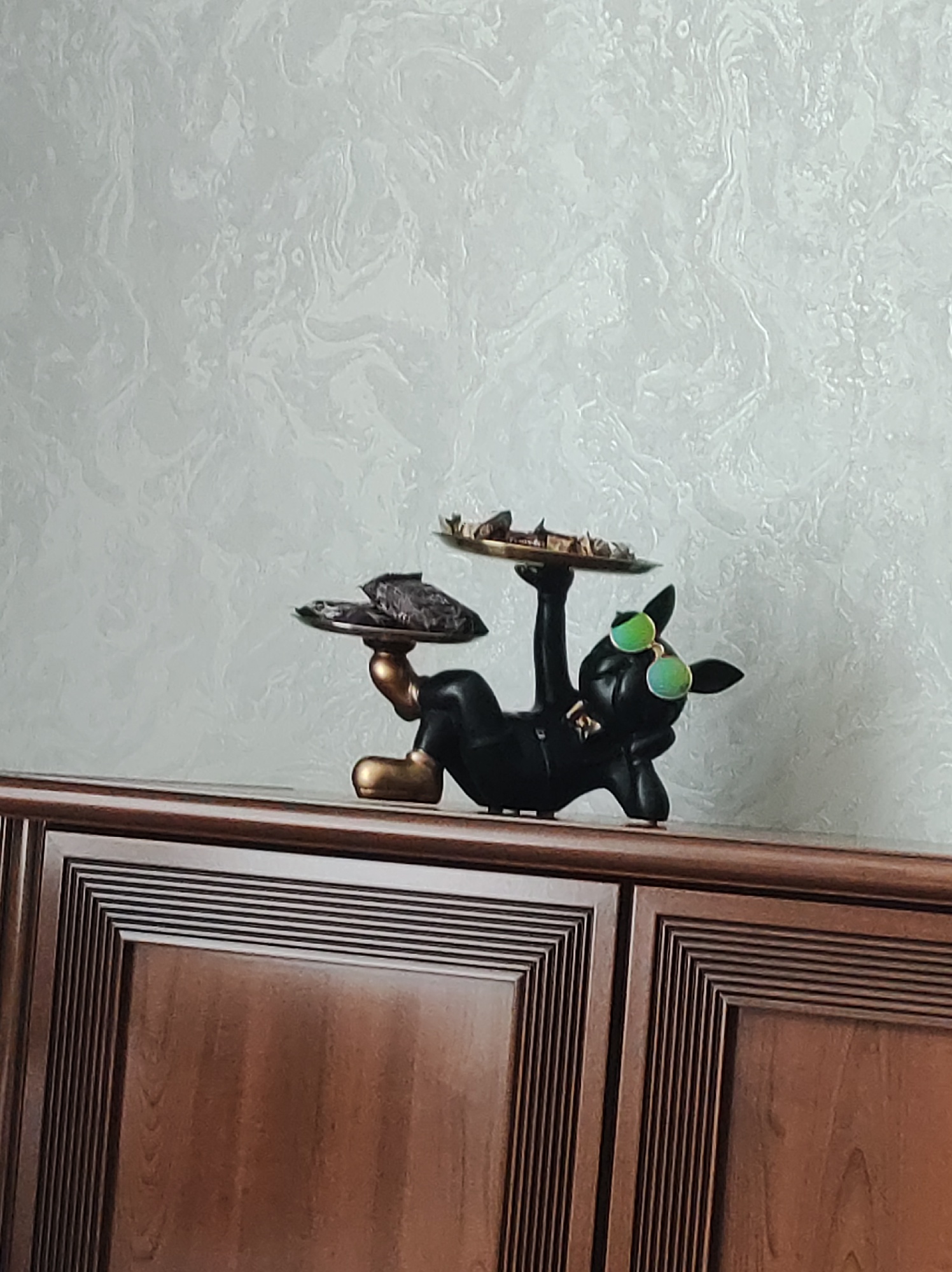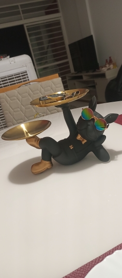 Very nice and practical. Ideal for placing keys, wallet, glasses, or papers. It comes with the cute round glasses. Perfect. Fast shipping and delivery, and very well packaged.