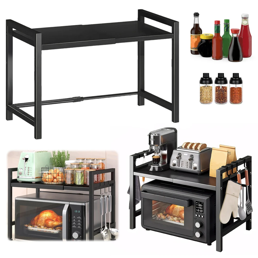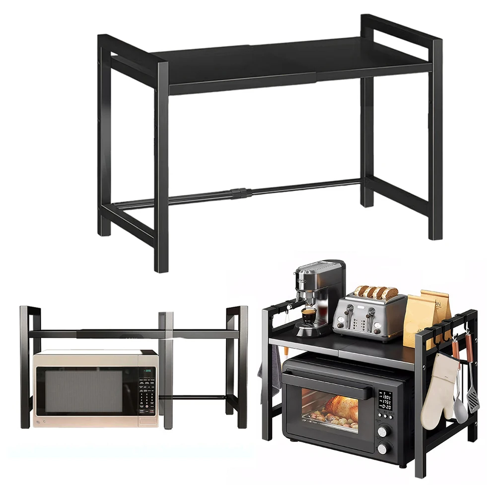 1.Extendable Design: The microwave shelf features adjustable length and height, compatible with most standard-sized microwave ovens or kitchen stand. Ideal for creating efficient space in your kitchen.