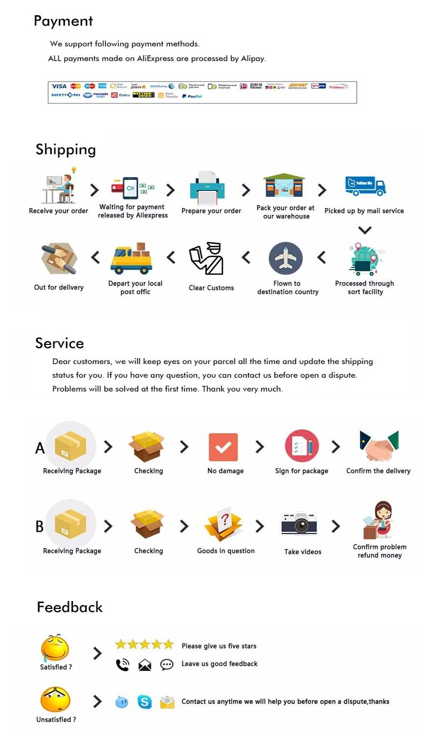 • If you did not receive the product within the guaranteed time( 45 days not including 2-5 day processing) you can request a refund or a reshipment.