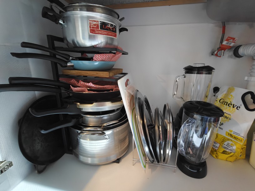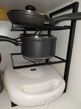 Great for saving space. But unfortunately, my small 14cm diameter saucepan falls through, please keep this in mind.