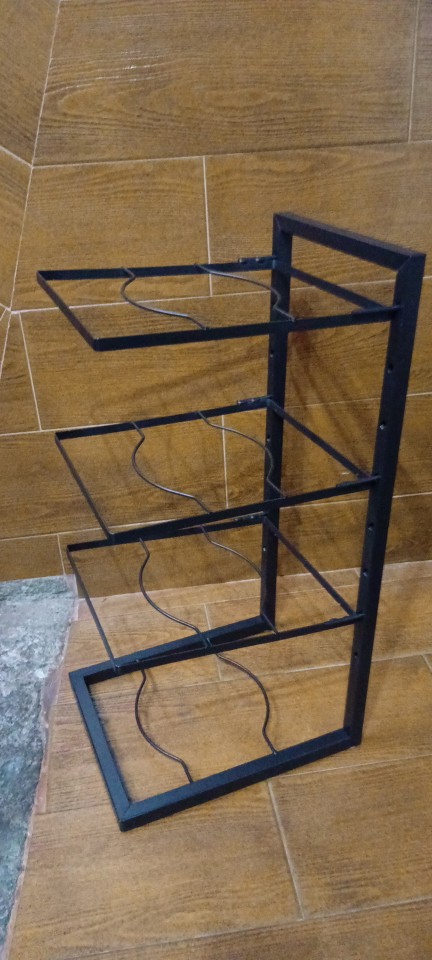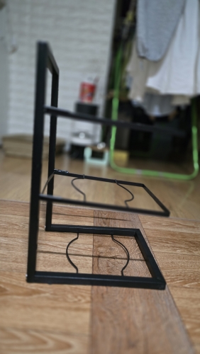The iron is thin and light, but it is stable if you place a heavy pot or something at the bottom. I placed it under the sink, and it's good for utilizing space. Assembly is also easy, just tighten two screws and it's done. I will use it well.