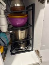 Great for saving space. But unfortunately, my small 14cm diameter saucepan falls through, please keep this in mind.