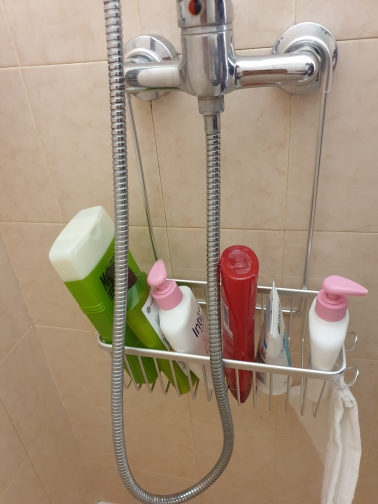 It is excellent and easy to place in the shower. I liked it because my shower is small and that's how I put shampoo and other things there.
