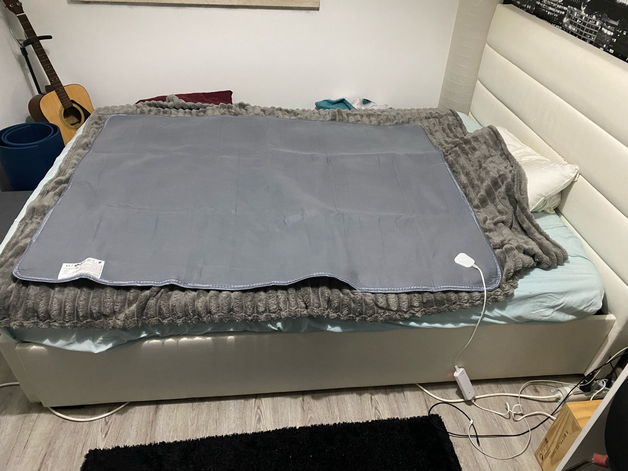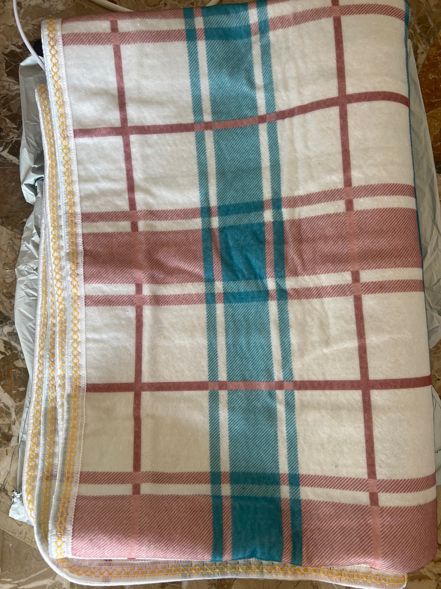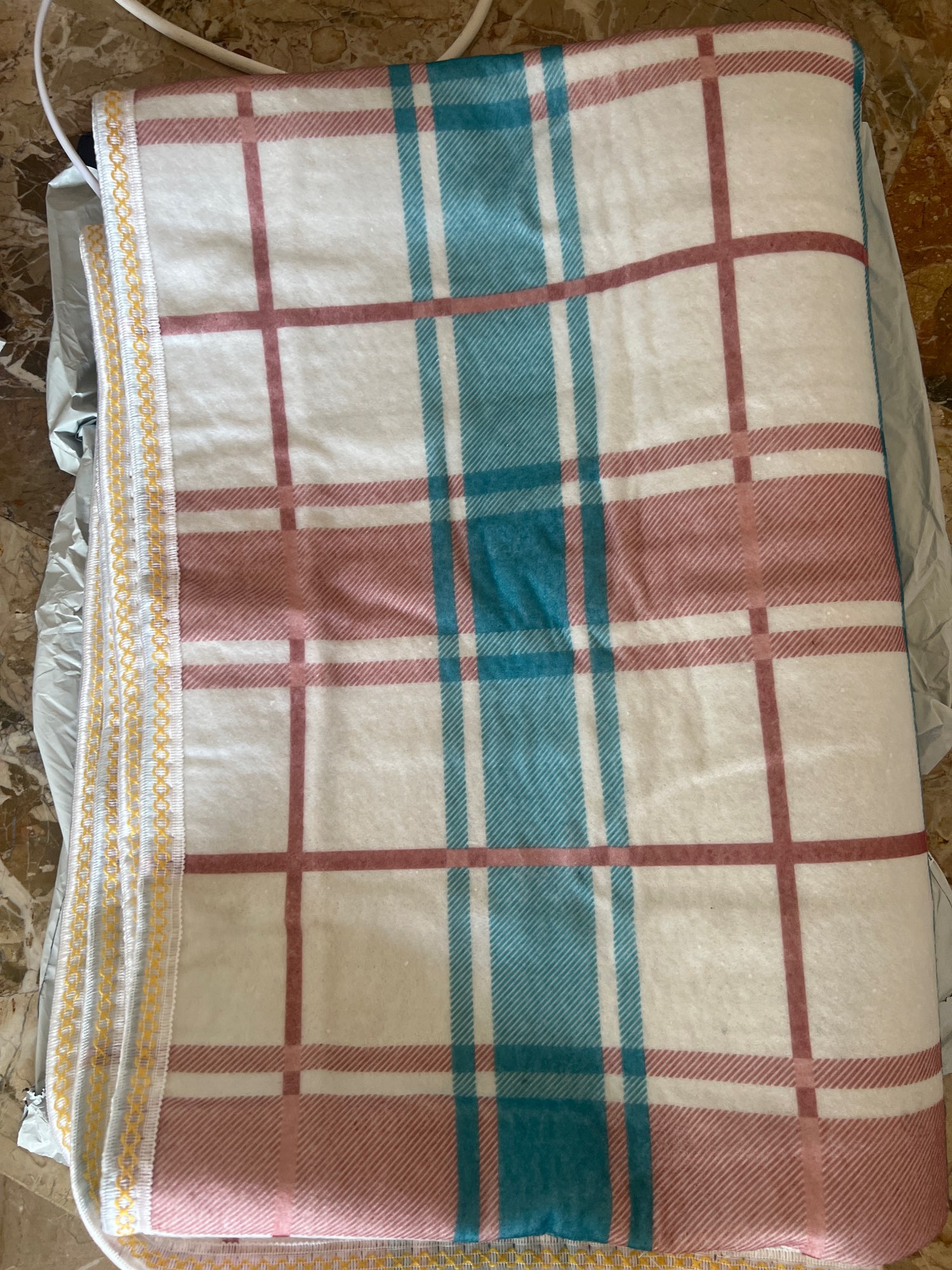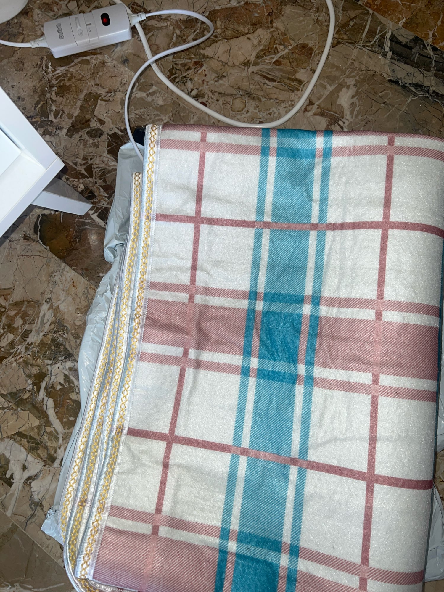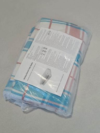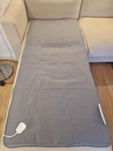 The parcel arrived in Ukraine in 2 weeks by Ukrposhta. It is the electric sheet made of non-woven, rough material. There are 2 modes: low and high. The wires themselves are thin and unevenly embedded. The sheet heats up quite quickly. It heats up normally. If you buy without a big discount, then it's not worth it..