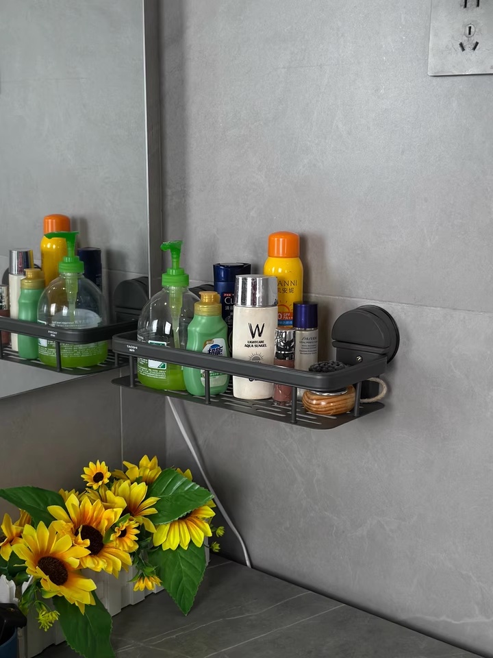 I received the product and was pleasantly surprised. The quality is excellent, and it is very cost-effective, which exceeded my expectations. The storage rack is lightweight and easy to handle, made of thick aluminum with a smooth finish. It has a large storage capacity and keeps things tidy. The suction cup design eliminates the need for drilling holes and makes it easy to move around. I will definitely purchase again in the future.