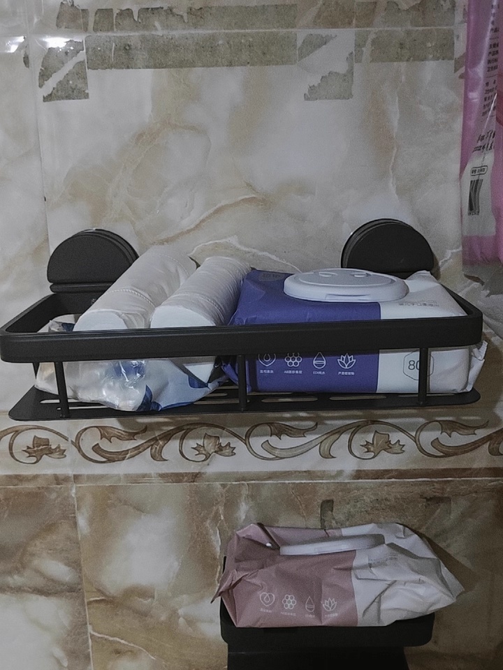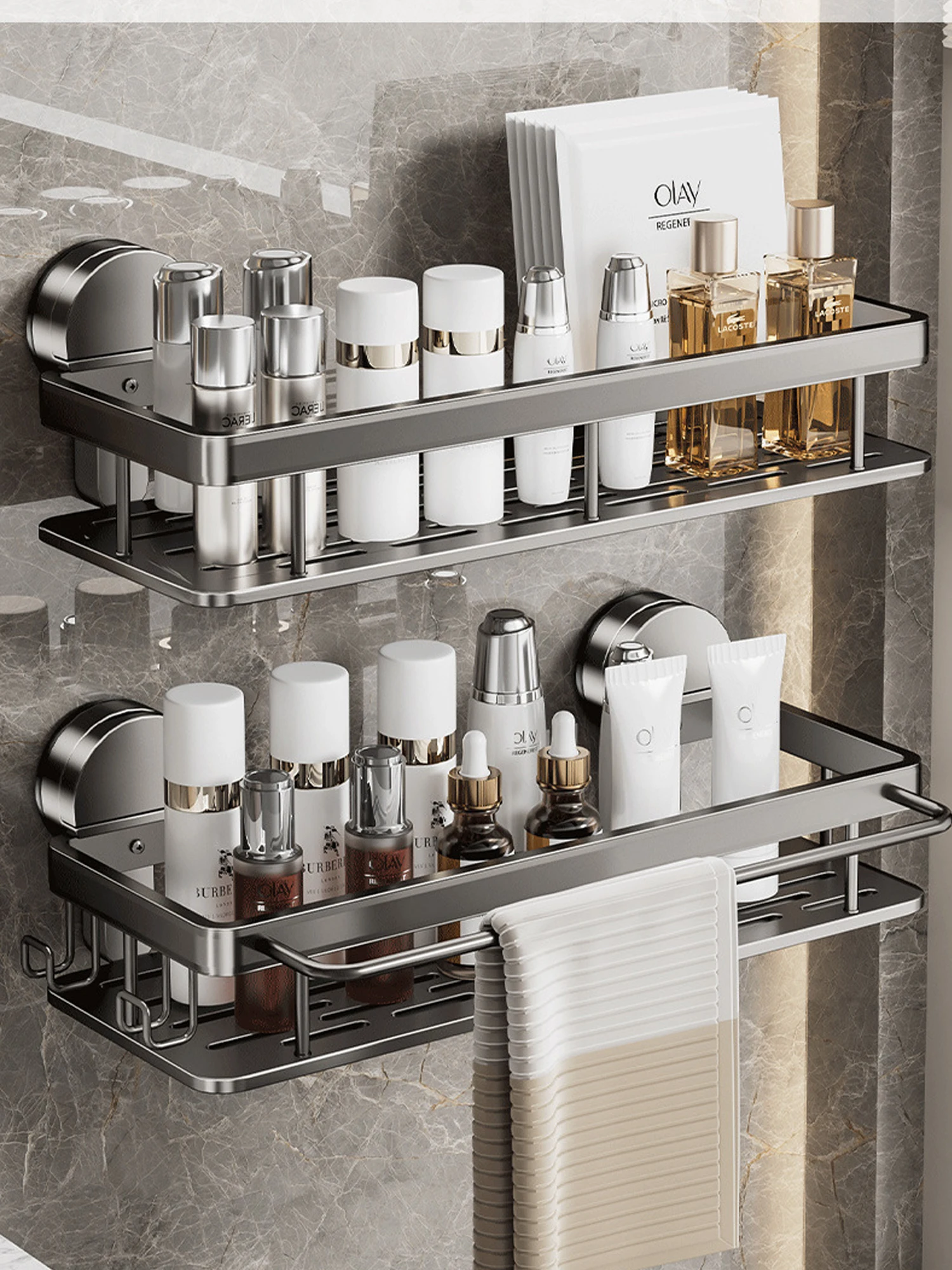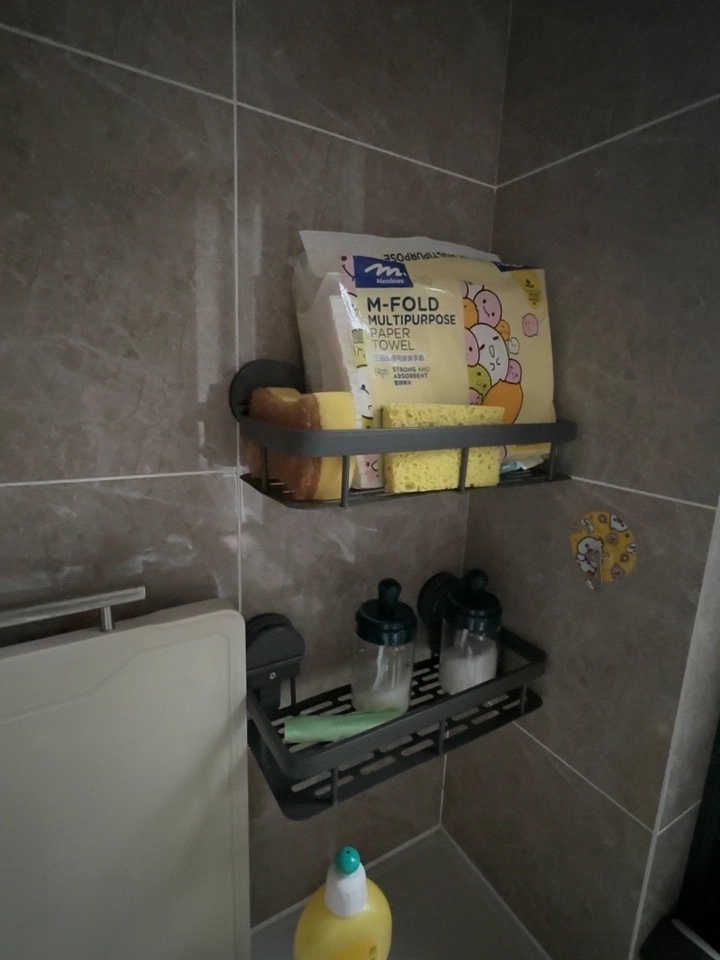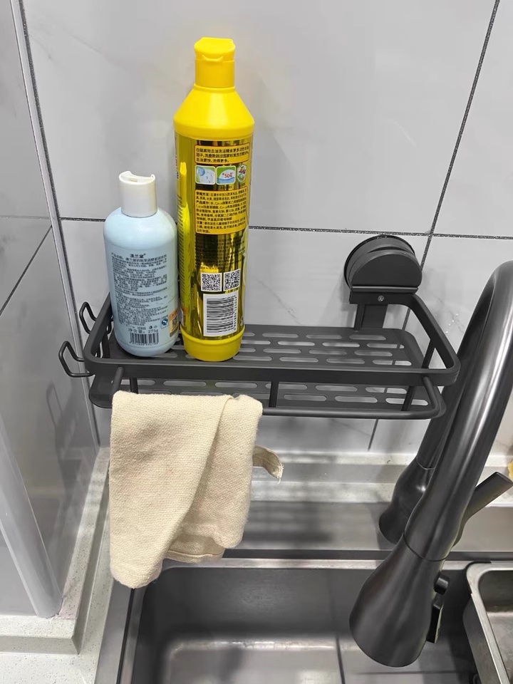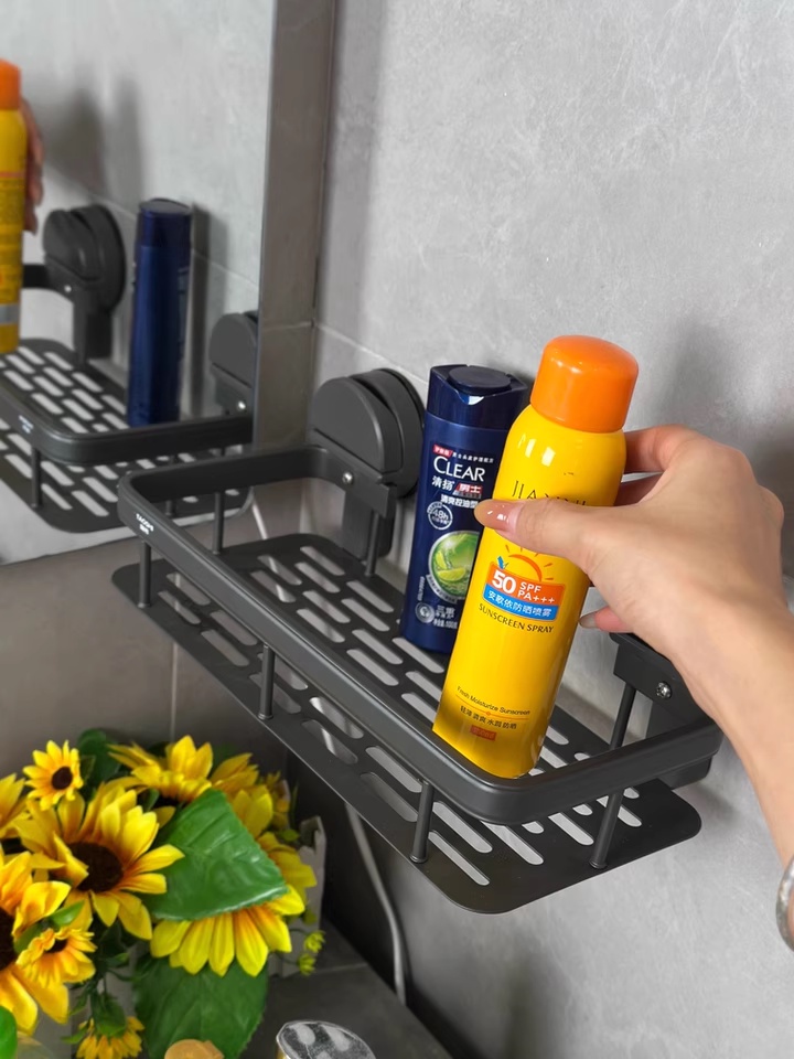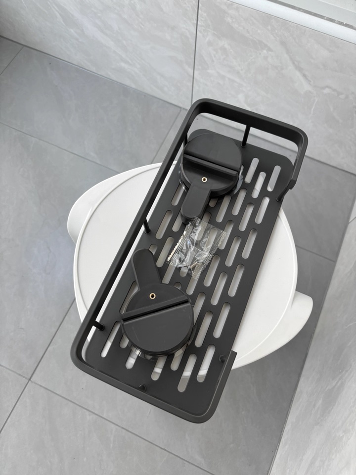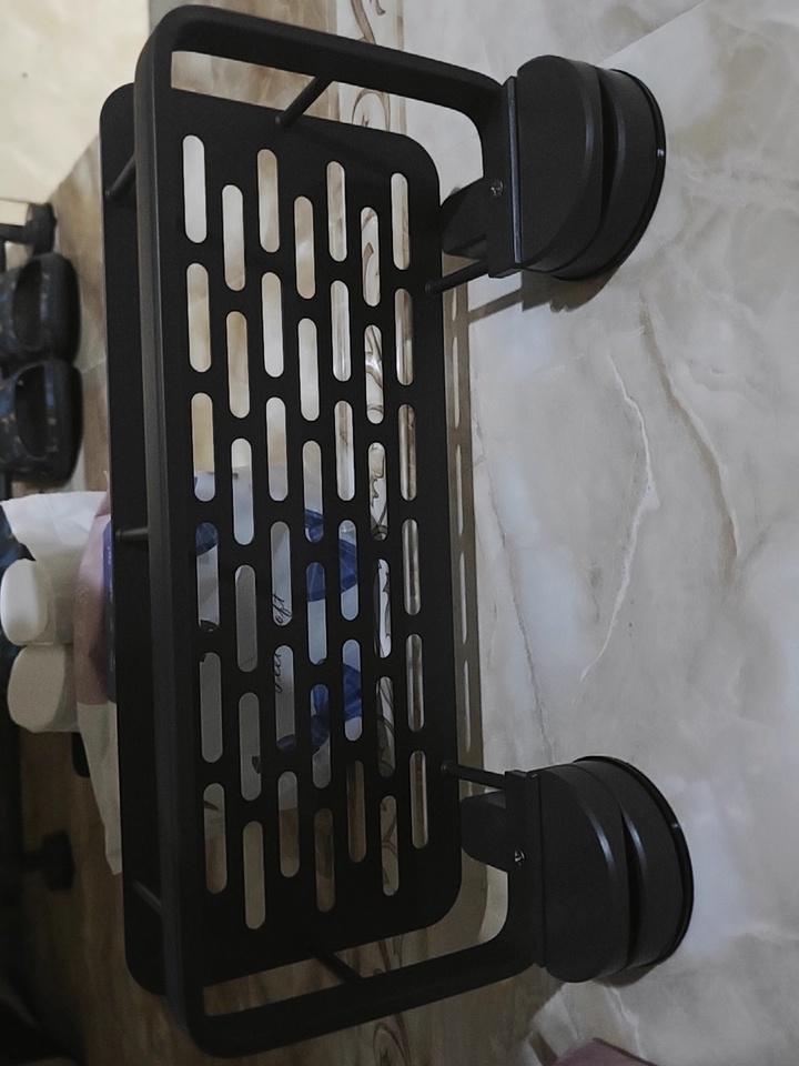 I received the item and was pleasantly surprised. The quality is excellent, and the value for money is high. It's really beyond my expectations! The storage shelf is lightweight to carry, the thickened aluminum material has a smooth finish, and it has a large capacity for storage, making it much tidier. The suction cup design without the need for drilling is convenient to use. I will definitely make another purchase.