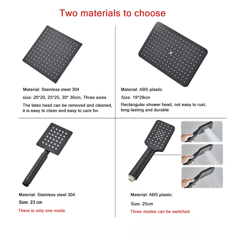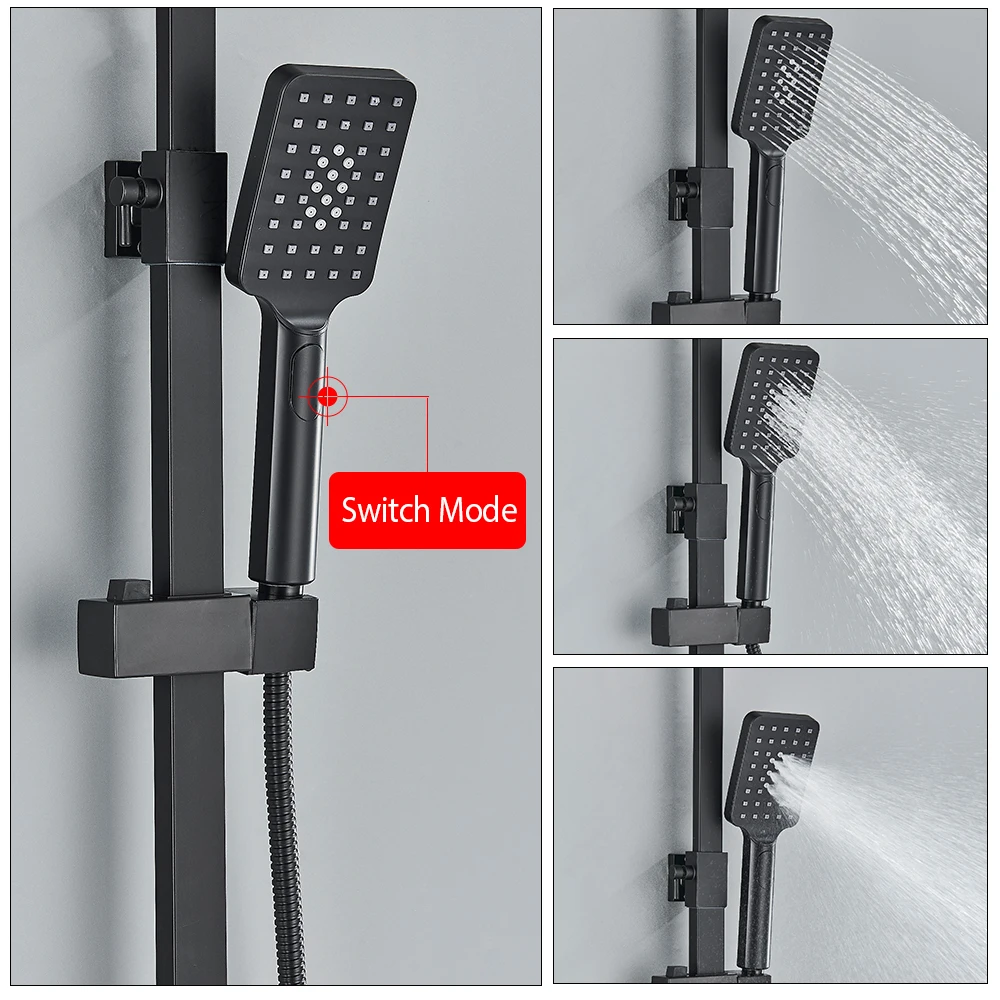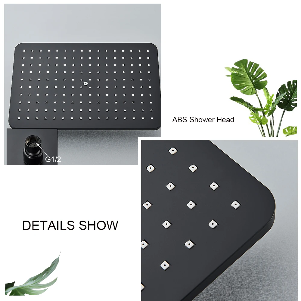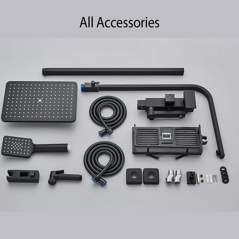 Black Shower Faucet Set Rainfall 3/4-way Bathtub Tap With Bathroom Shelf Height Adjust Shower Mixer CraneHot Cold Water Mixer Bidet Faucet