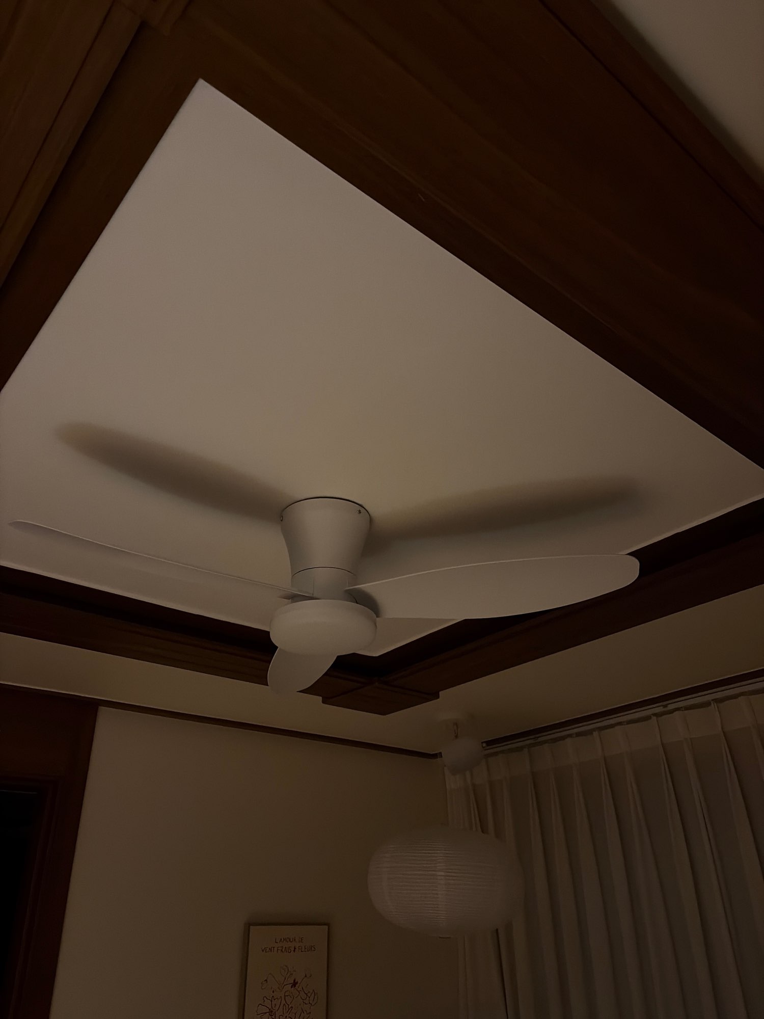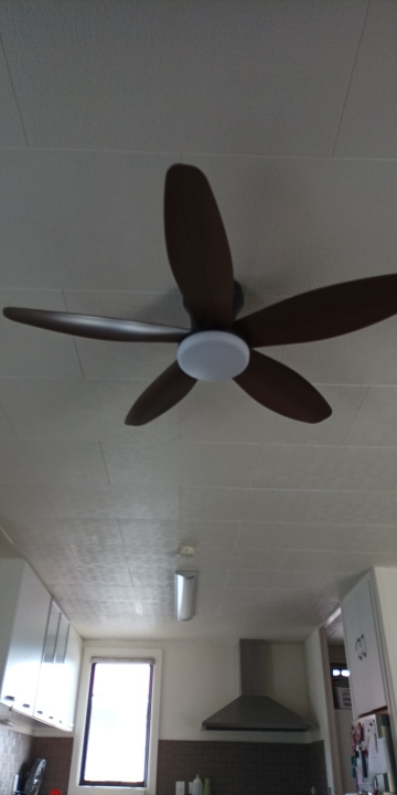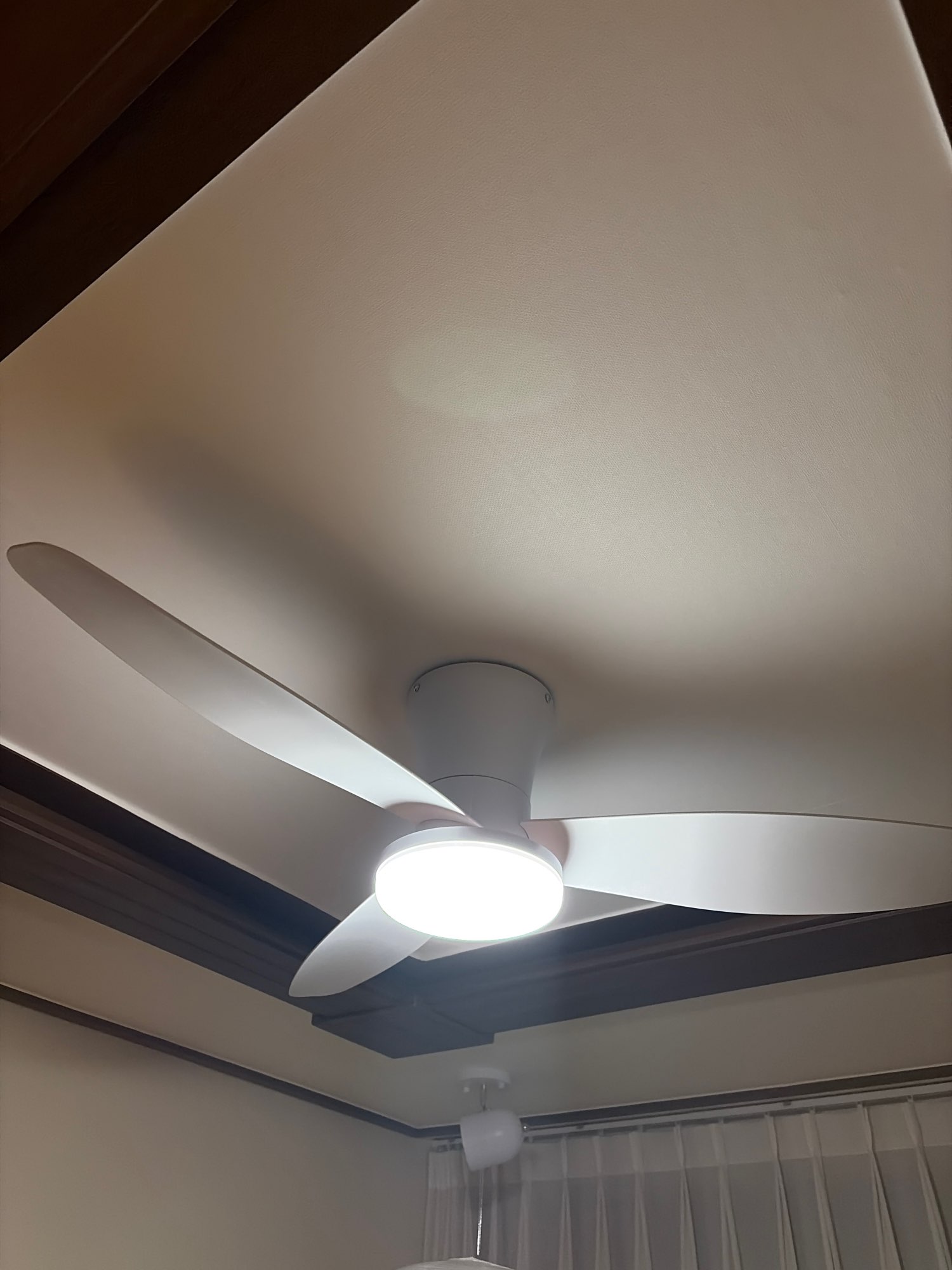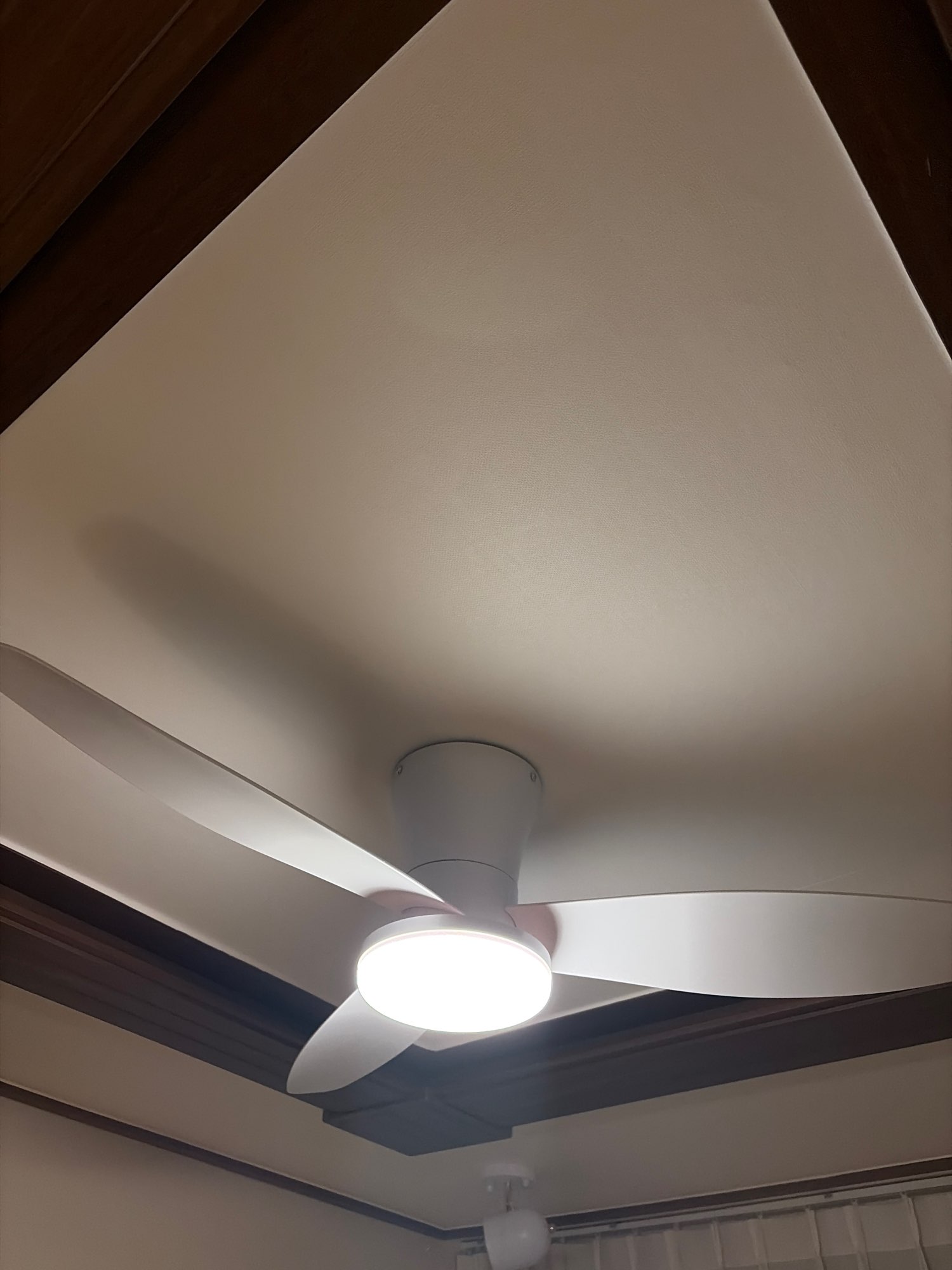 Our house is made of granite, so there are no wooden beams on the ceiling, which made it a bit difficult... I'm so satisfied! I'm looking forward to how cool it will be in the summer. Even on the first setting, it's cool! My husband was very sensitive to the lighting, but he's okay with it now... I'm satisfied too, haha. I'll install another one in the master bedroom.