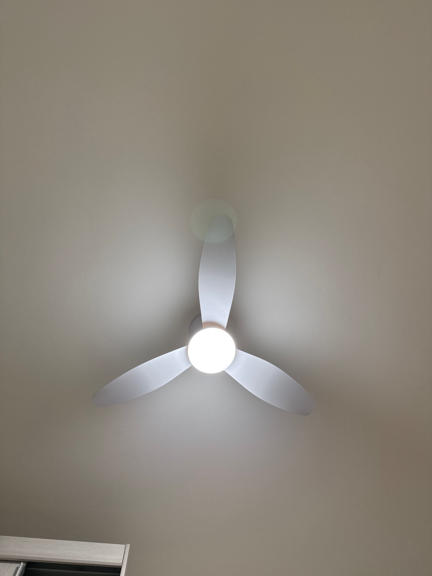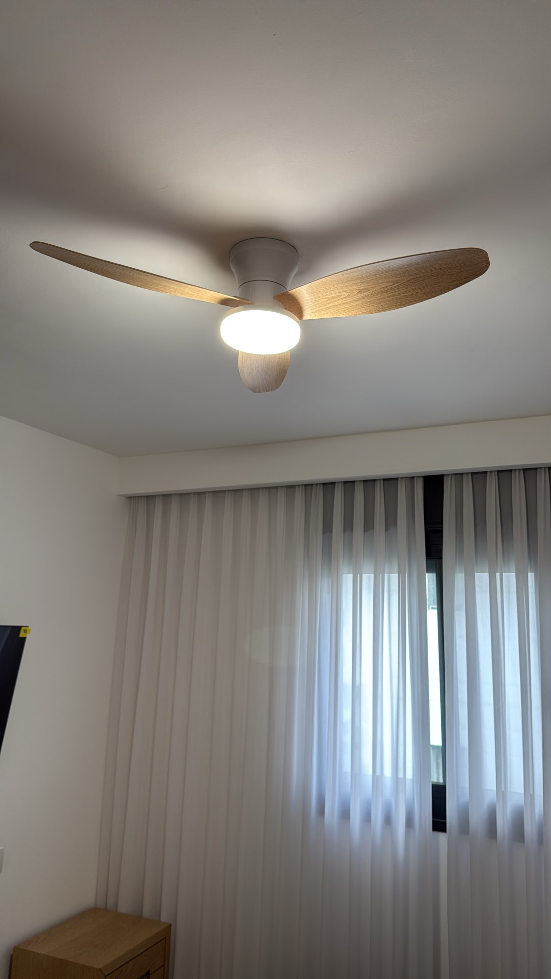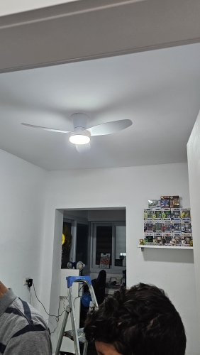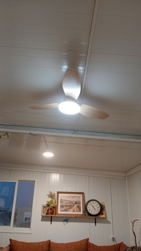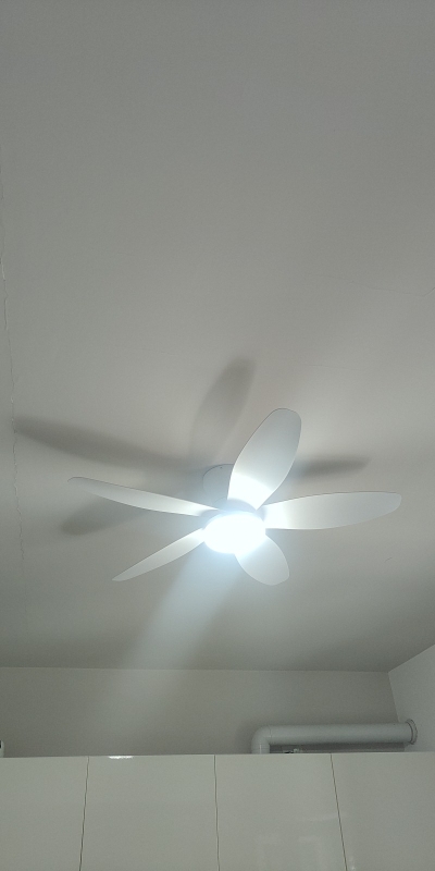 Our house is made of granite, so there are no wooden beams on the ceiling, which made it a bit difficult... I'm so satisfied! I'm looking forward to how cool it will be in the summer. Even on the first setting, it's cool! My husband was very sensitive to the lighting, but he's okay with it now... I'm satisfied too, haha. I'll install another one in the master bedroom.