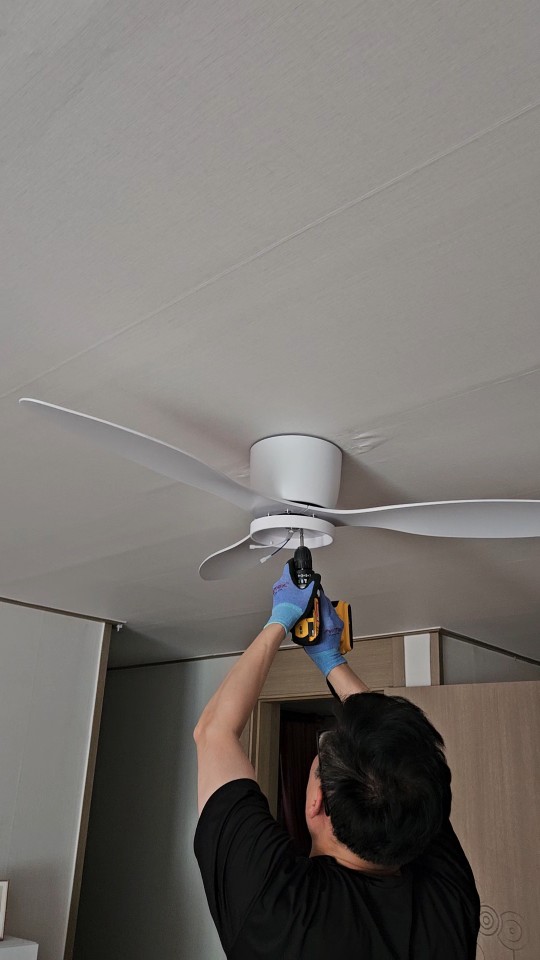 This is really a good product. It's quiet and the light in the middle is quite bright. Glowing color. Is it more white than bulb color, around 4000k? You can choose two lights. Some people mentioned shaking in the comments. It's a slight shaking issue. There is a solution. Usually, the ceiling is either gypsum board or plywood, but most likely it's gypsum board. When hanging on a plaster board, it must be firmly fixed. The plate side should be fixed with the widest surface possible, so remove the thin sticker attached to the plate. Then, secure it firmly on the pupil anchor or neck mount. And among those who commented, there was someone who mentioned sponge soap. A good method is to mold the gap to secure as much surface area as possible. Please also make use of this. The item is really good.
