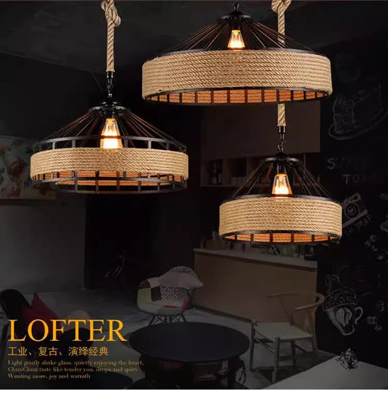 Classical Hemp Rope Pendant Hanging Lamp Lustre for Ceiling