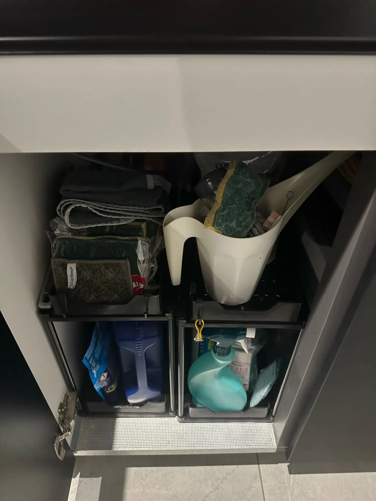 Perfect under the kitchen sink, I even regained some space in the middle.