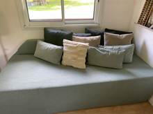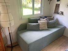 Super rendering, the color is magnificent. I don't have a sofa, it's two thick mattresses on top of each other with a small mattress as a backrest, and the result is great. 👌