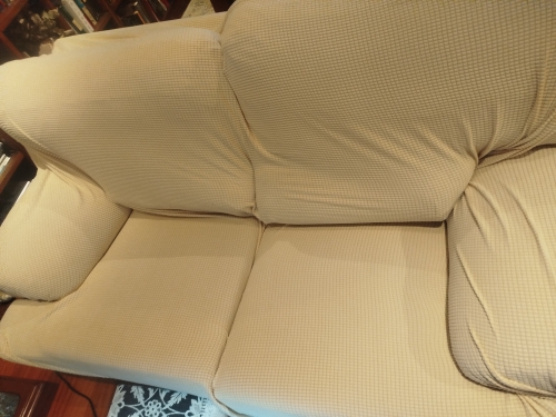 It is a fabric that fits well to the different irregularities of the sofa, although I bought it large.
