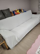I am writing because this product exceeded my expectations. 1. Fitting condition is excellent. I tried to buy a sofa cover for 'European-style recliner 4-seater leather sofa' domestically, but it was too small. So I bought an Ali product and as soon as I received it, it took about 2 hours and 20 minutes to wash, dry, and install. The size fits comfortably with some room to spare and looks great. 2. The sofa cover is in excellent condition. As soon as I received the product, I washed and dried it, and the fabric condition before and after is consistent and good. 3. The function is also very good. When sitting and standing repeatedly, the cover changes its state frequently making it difficult to use, but this product requires minimal effort. Additionally, when you receive the product, do not throw away the '10 hard files with a diameter of 2cm and a length of 25cm' that come with it. After covering them, push the fabric and files deeply between the right-angled bends on each side of the armrests, making a total of 4 files for each side, totaling 10 files. These files serve as stoppers for the sofa cover.