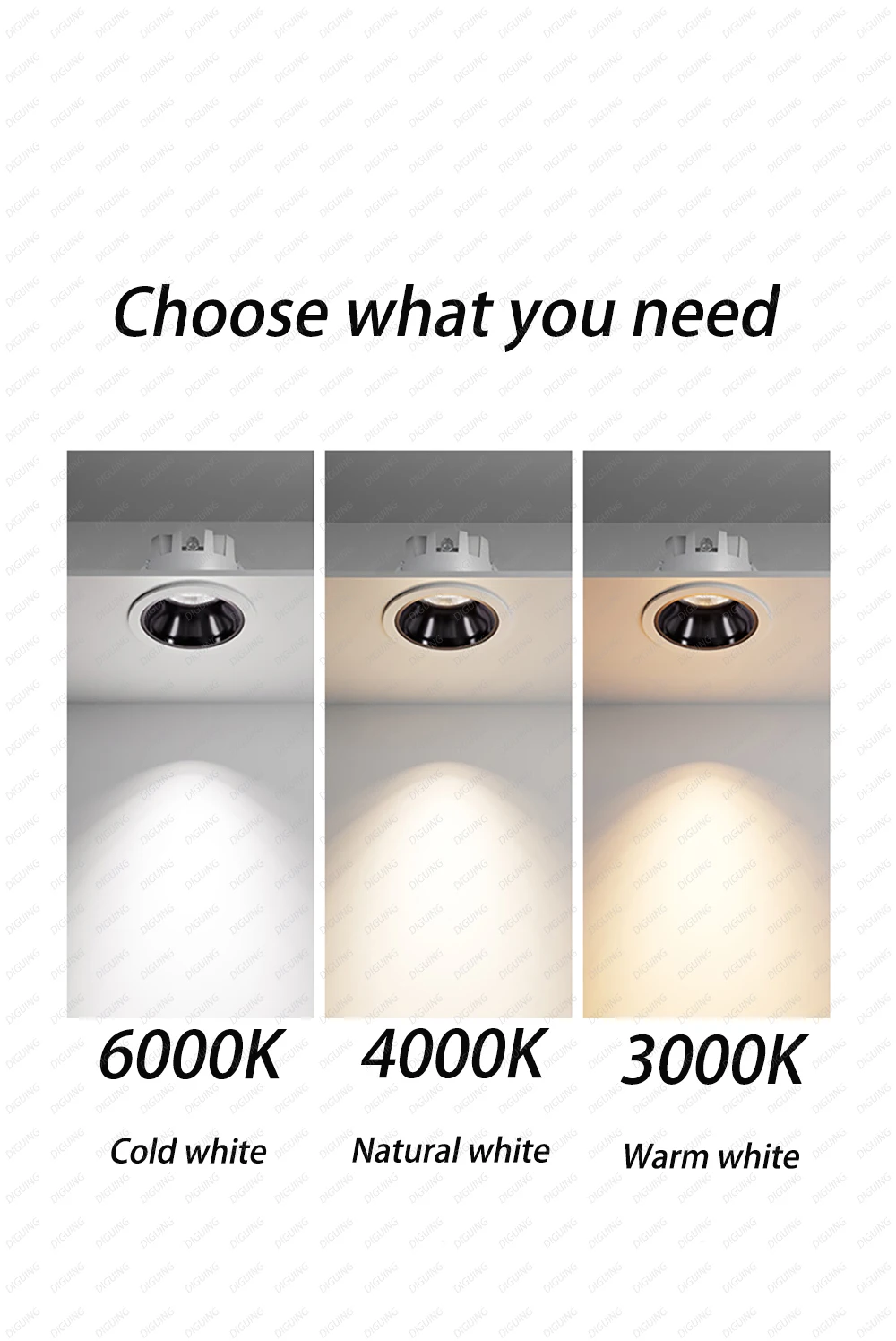 •Color Temperature:Warm White:(2700K-3200K); Natural White:(3800K-4300K);Cold White:(5800K-6300K)