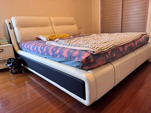 Good solid wood bed, the right size, generally no shaking and a little noise, both sides of the headboard touch the night light.