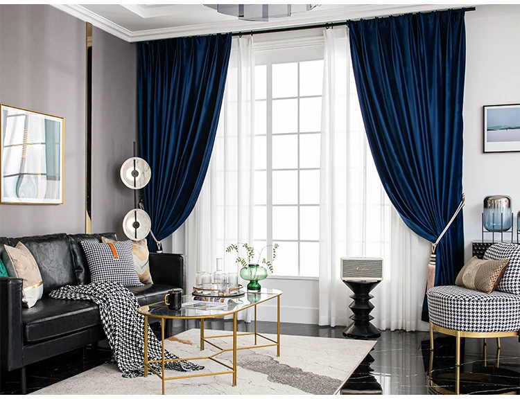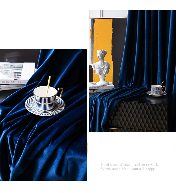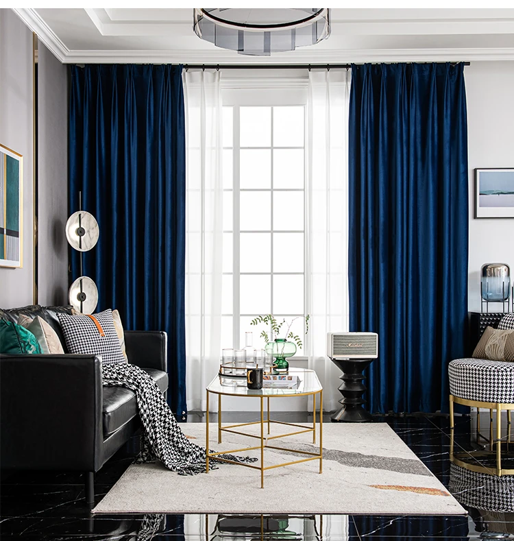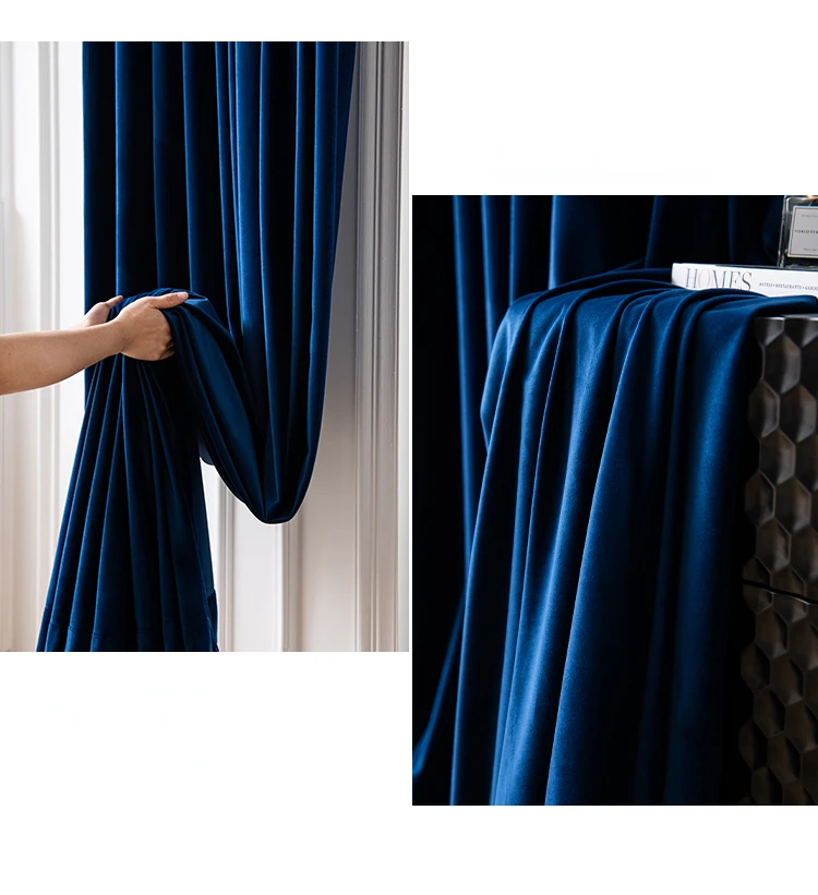 Fashion Royal Blue Velvet Curtains for Living Room Luxury Blackout Bedroom European Window Kitchen Elegant Solid Color Tulle