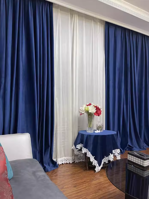 Fashion Royal Blue Velvet Curtains for Living Room Luxury Blackout Bedroom European Window Kitchen Elegant Solid Color Tulle